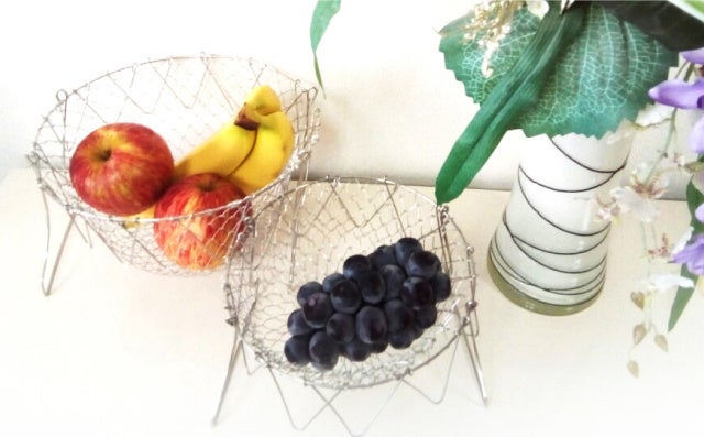 持ち手を回転させて押し下げればスタイリッシュな自立型のバスケットに早変わり!フルーツやスイーツなどをのせてお部屋のアクセントに!