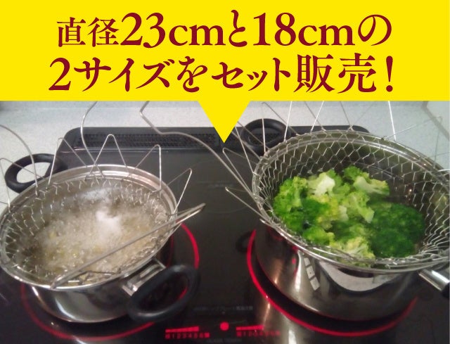 さらに、大きい方のサイズのバスケットも深鍋にも十分に対応できるよう、通常より3cm深く、カスタマイズいたしました。