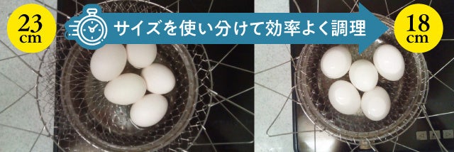 少量のお湯で卵などを茹でられるので、一段と素早く仕上がります!