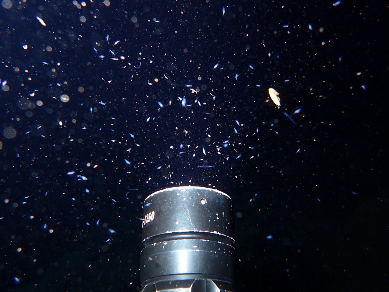 ☆水中のプランクトンなどの集まり具合をチェックする試みで、今回は逆コース取りでまわりました。その結果、プランクトンや虫は時間や場所は関係なくライトが止まっているとどんどん増えてくるだけでした。