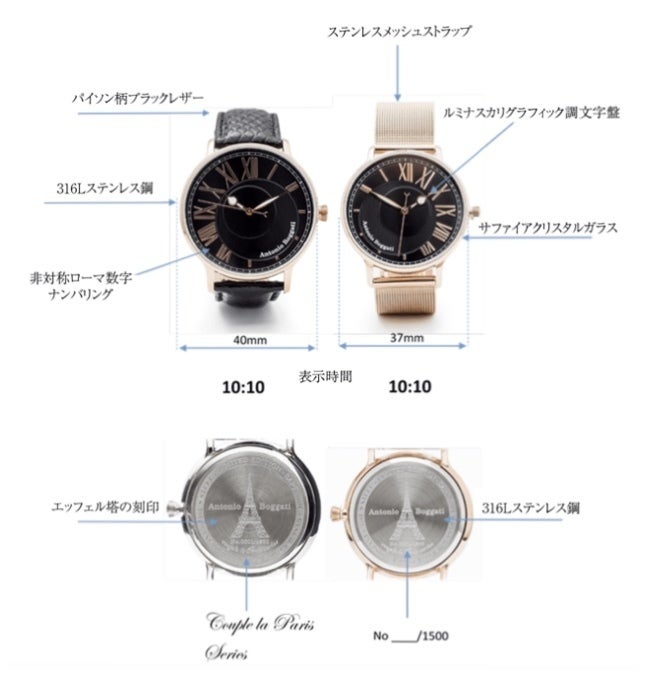 Antonio Boggatiは、キプロス出身の若手起業家兼シビルエンジニアDemetriades Andreasが2019年に設立した手頃な価格の高級時計ブランドです。 イタリアの優雅さとフランスのロマンスを組み合わせた独創性とシンプルさを組み合わせた独創的でユニークなデザインが特徴です。 アントニオボガティによる特別な「カップルラパリ」シリーズは、らせん階段に着想を得たユニークなデザインで、カップルのつながりを表現しています。