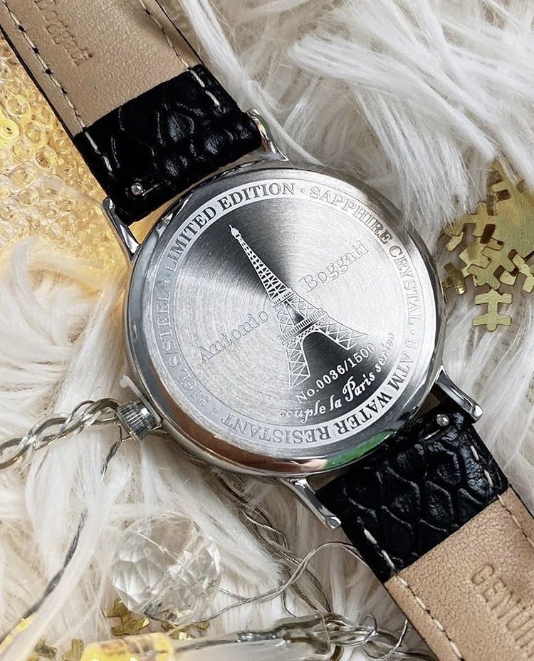 「Antonio Boggati(アントニオ・ボガティ)」ブランドというこの独自路線ですが、具体的に説明しましょう。時計のデザインをとても魅力的なものとするため、まずは紙にデザイン画を描き始めました。とてもユニークなものをデザインしたかった。私はシビルエンジニア(注1)なので、現代的な建築物の構造とモダンなデザインの建築物に憧れを抱いていました。デザインのインスピレーションは、螺旋階段からきています。また、シンメトリー(対称的)な形から逃れる現代的な建物のようにアシンメトリー(非対称)なものをデザインしました。「Antonio Boggati(アントニオ・ボガティ)」ブランド最初のシリーズは「カップルラパリ」シリーズです。ロマンチックなフェアリーテイルをベースにしました。デザインのすべての細部に特別な意味があります。これこそ、私が本物と呼んでいるものなのです。アントニオ・ボガティの時計を身に着けている一人一人が、物語、アイデア、ビジョン、モダンアートの作品を身につけているのです。時計の中での情熱とラグジュアリーの融合。あなたが絵画を購入するのであれば、その時、あなたはアーティストの表現方法そのものを購入しているのです。(注1)新国立競技場の最初のデザインをしたザハ・ハディッドのような建築家は、主にデザインを中心として仕事を行います。それに対して、シビルエンジニアは建築物のデザインのみならず、構造計算、コスト計算までも行う日本の建築士に近い職種