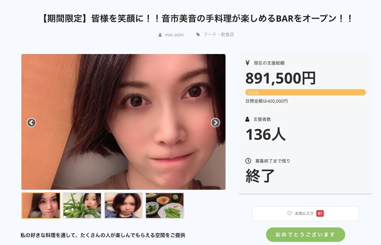 お店まで行けないけど音市美音の飲食店プロジェクトを応援したい方