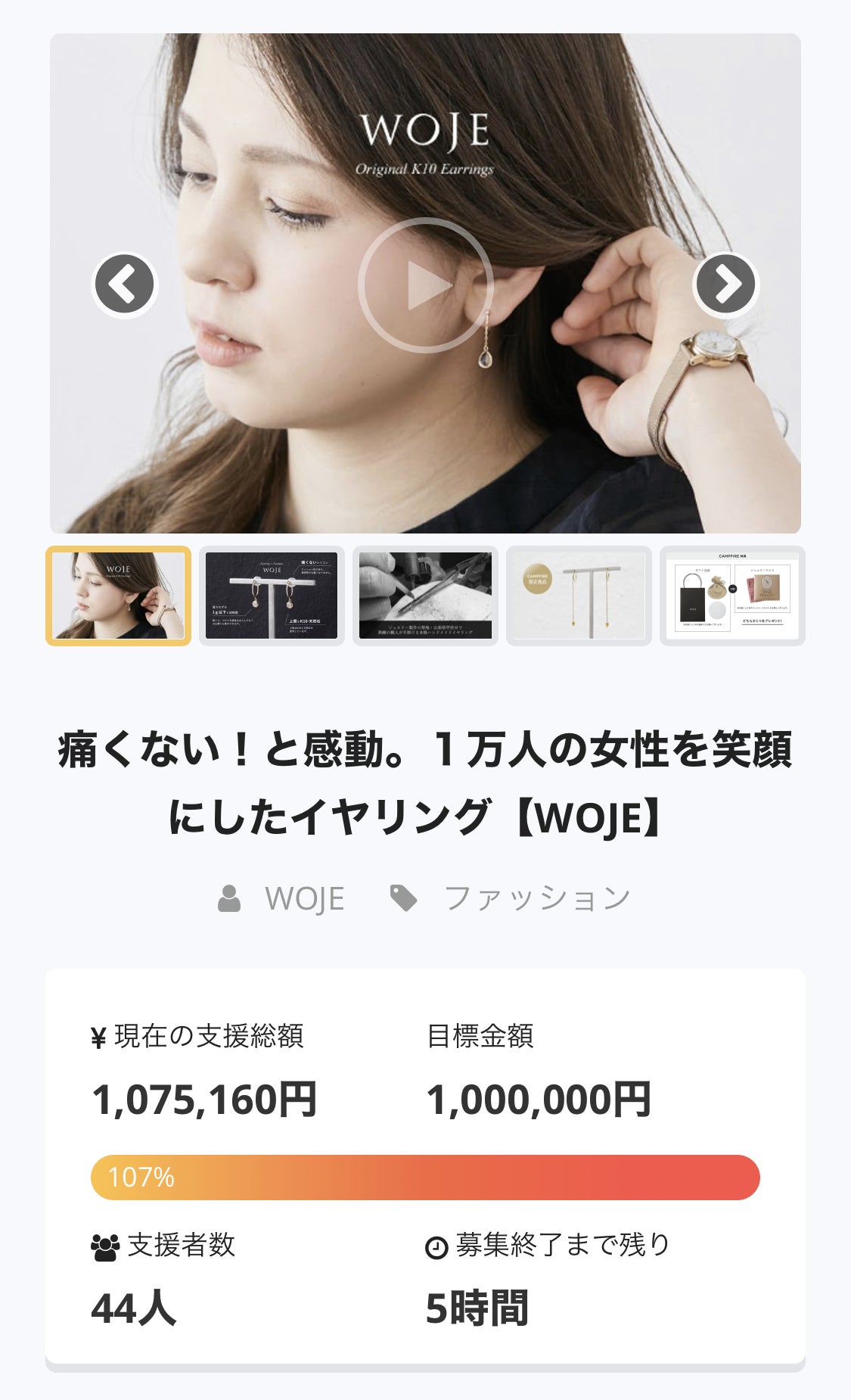 支援金は、WOJEのイヤリングを更に広めていくための広報費(特にファッション雑誌へのPR費)に活用できたらと考えています。