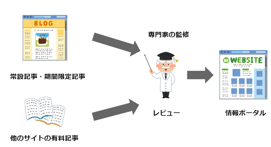 他のメディアの有料記事をポータルサイトがレビュー・提携することで、ユーザーに有益な情報だけが届くような体制を生み出します。