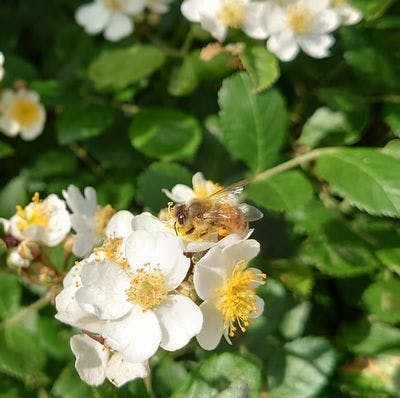 養蜂環境としては、ハチミツを採る春には梅も桜も一気に花開き、レンゲ、スモモ、花梨、マルメロ、ウワミズザクラ、山桜、こぶし、キウイ、リンゴ、柿、野ばら、そしてアカシア等の花々が途切れることなく開花して蜜蜂達が乱舞し蜜を集めてくれます。そしてその一部を私達が戴く事になります。夏から秋には栗、ヌルデ、タラ、ウドや蕎麦の花等の蜜をミツバチ自身のエサ用として豊富に巣の中に蓄えさせることが出来ます。