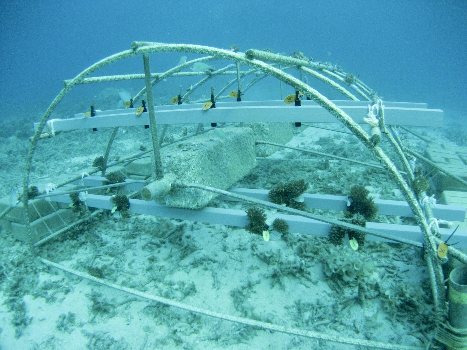 コーラルベッドは、鉄筋でできたドーム状の構造物です。設置は手作業で行います。