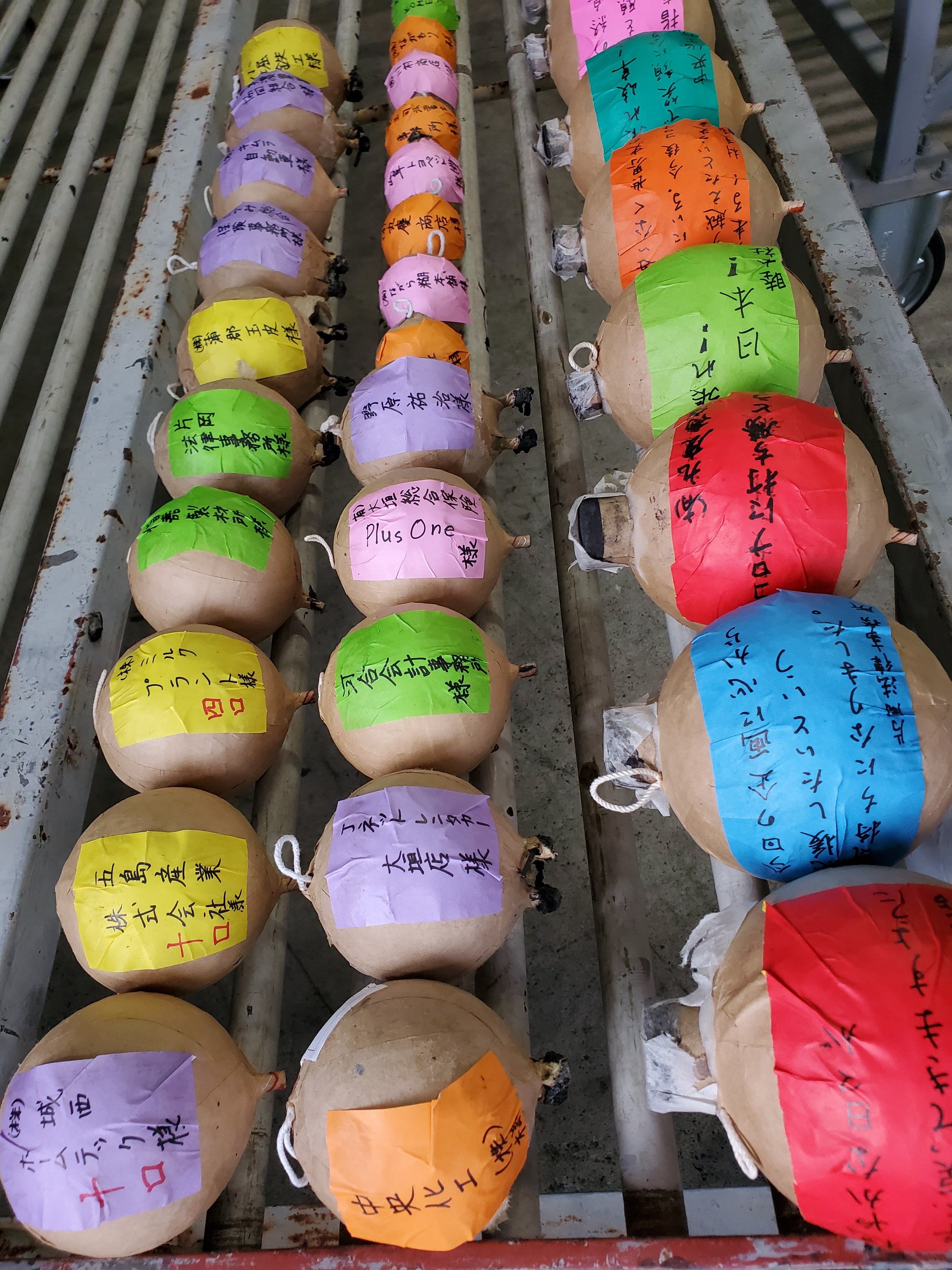 4号(直径約12センチ)、尺玉(直径約30センチ)サイズの花火模擬玉です。