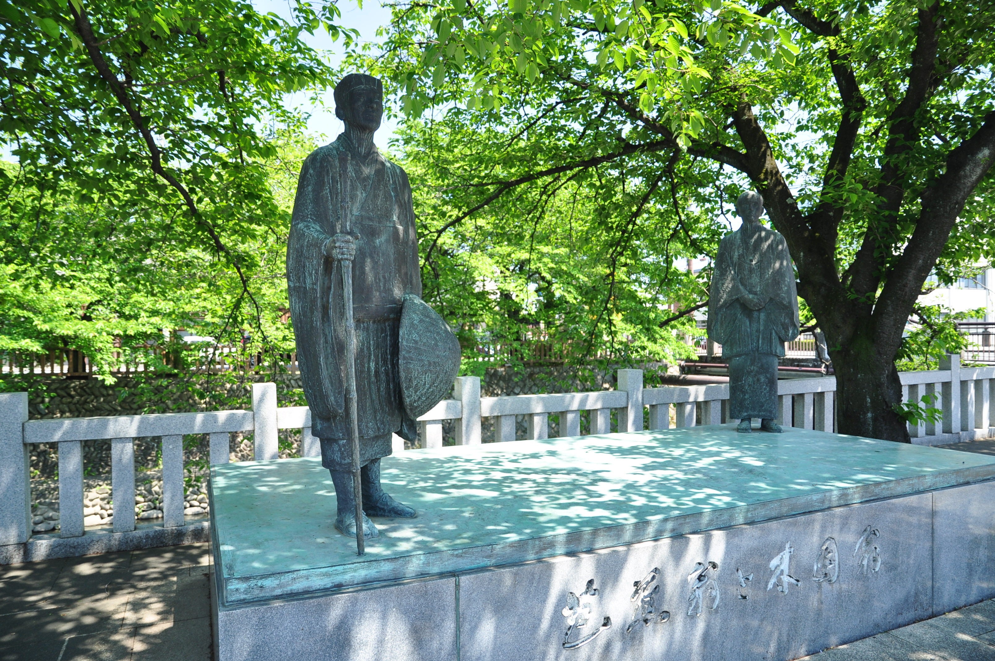 松尾芭蕉の銅像。大垣市は奥の細道の最終地点「結びの地」でもあります。