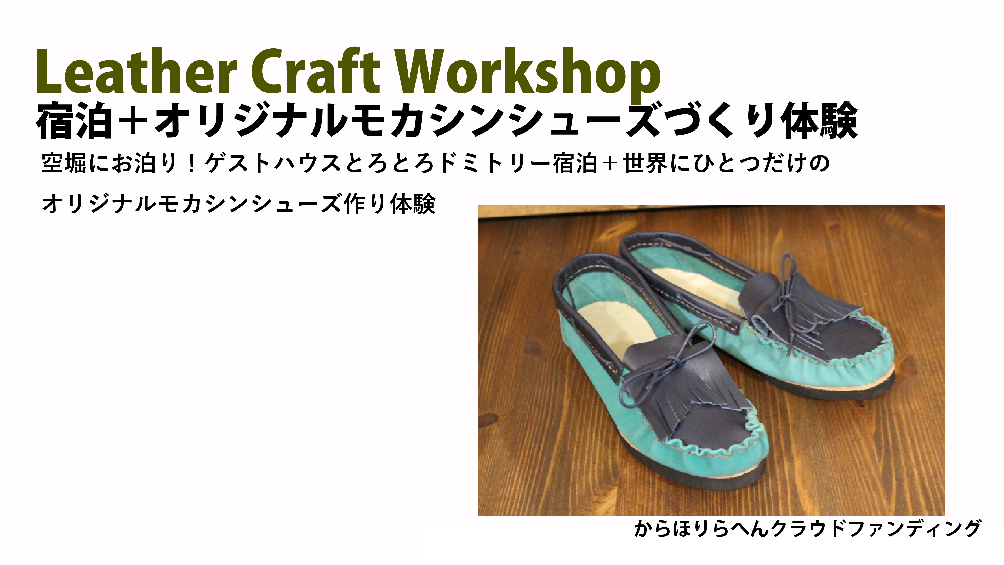 今回ご紹介するのは、からほりらへんクラウドファンディングのリターンの一つ「空堀にお泊り!オリジナルモカシンシューズ作り体験+ゲストハウスとろとろドミトリー素泊まり」です。