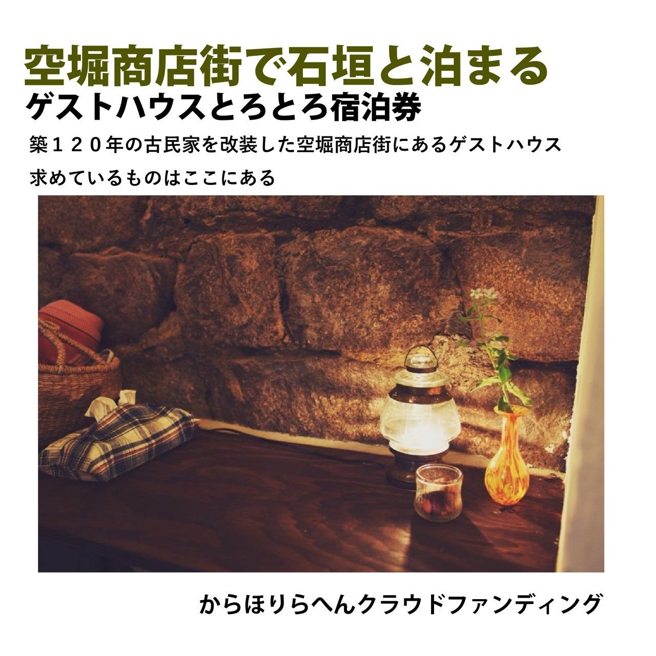 リターンは築120年の古民家を改装した小さな小さなゲストハウスへの宿泊とからほりらへんPASS。