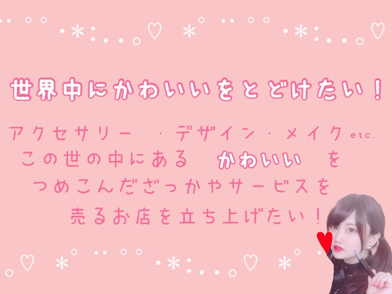 というのもアクセサリー販売やデザインの仕事がしたい、またメイク教室や着物の着付けができるので着付けをしてあげた後に着物に合ったメイク、アクセサリーなど様々なかわいいを提供していきたい!!