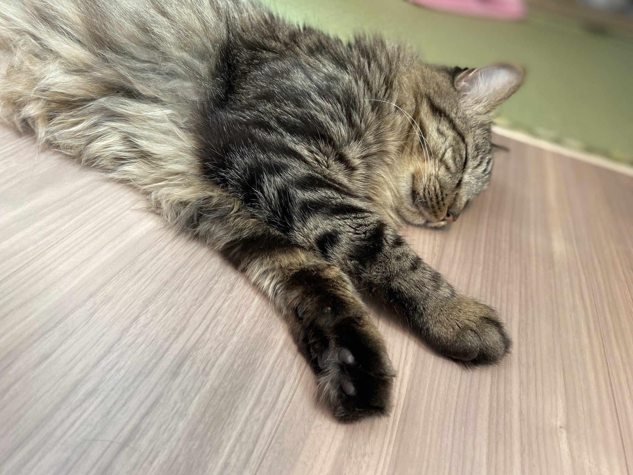 猫の寝顔って癒されますよね。安心して寝てくれてると思うとホッとするとゆーかこちらも幸せな気持ちになります。謎の寝相にはちょっと笑いがでますね( ´_ゝ`)