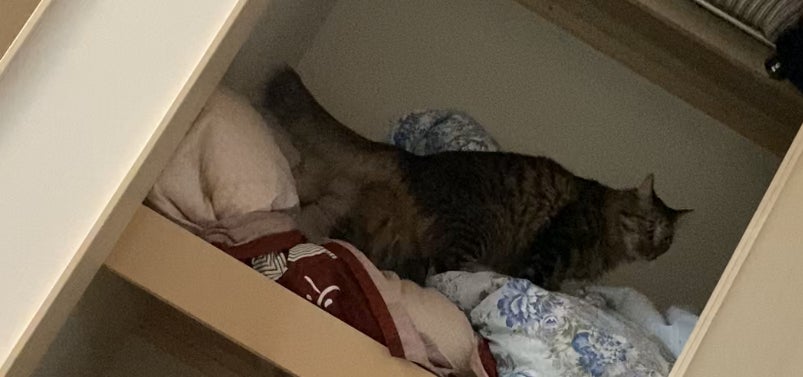 押し入れの布団が毛だらけ笑押し入れをしめるとさだちゃんに怒られるので年中あけっぱなしです( ˘ω˘ )今日、いい結果がでることを期待して病院を予約しましたが来週に変更になりました。(病院の都合で)今日すさまじく暑いので→今38度( ´_ゝ`)来週になってよかったのかも?