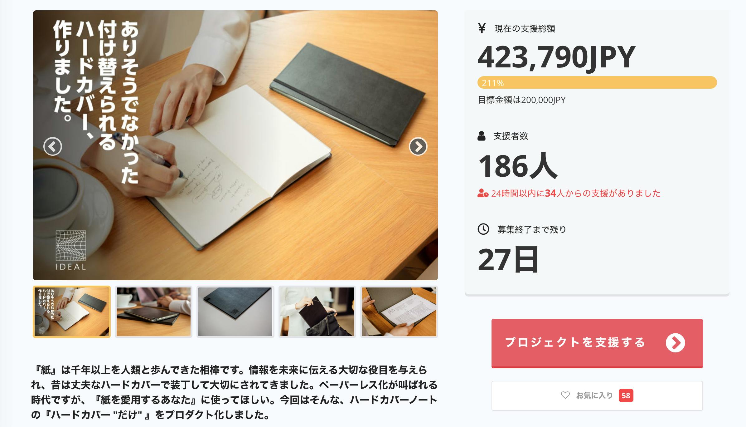 ありそうでなかった、ノートや書類に『付け替えられるハードカバー』 IDEALのクラウドファンディング3日目にして、目標達成率が200%を突破しました!