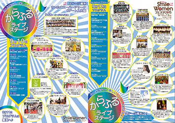 この経験から、様々な方と、多種多様なジャンルを一緒に楽しめる音楽ステージの魅力に気づき、埼玉県主催「Smile Women フェスタ」の時、入り口ステージで ”からふるライブステージ” (今回の原型となるイベント)を開催することができました。参加者同士の交流も生まれ、イベント後、コラボ企画を一緒された団体もあったと聞きました(以下の画像は当時のチラシです)。しかし、このイベントは2016年で開催終了となり、そこに付随していた ”からふるライブステージ” も終了となってしまいました。
