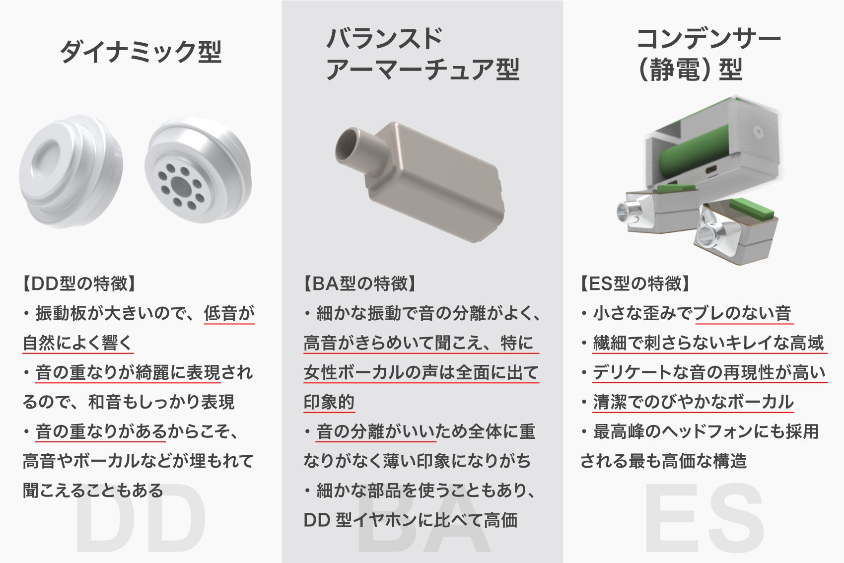 DD+BAシリーズは、2種類以上のドライバユニットを搭載したハイブリッドイヤホン。