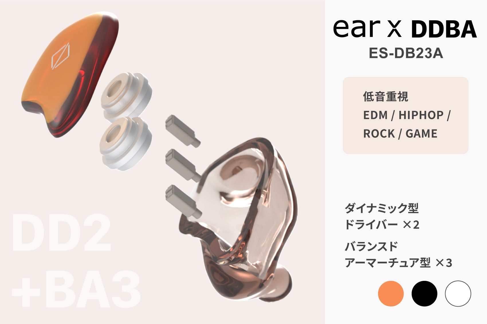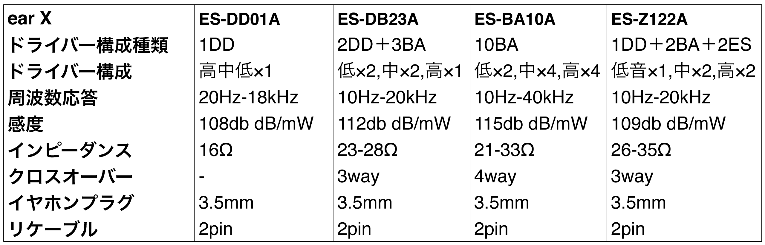 →【earX DD+BA〈ES-DB23A〉】(低音重視・DD2個+BA3個)
