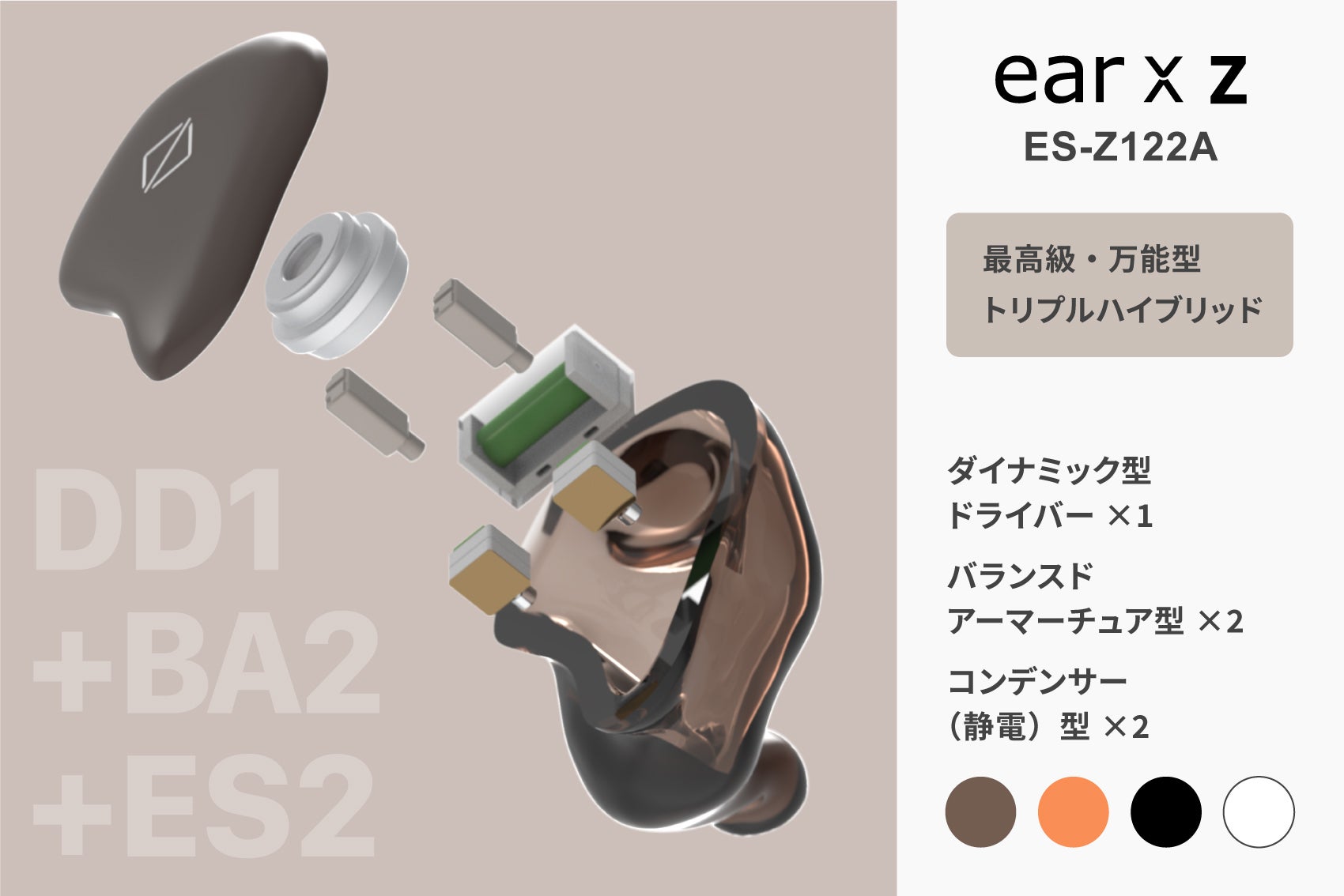 【earX Z〈ES-Z122A〉】(最高級/万能・DD1個+BA2個+ES2個)