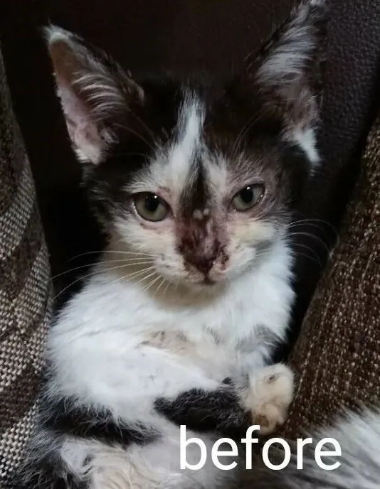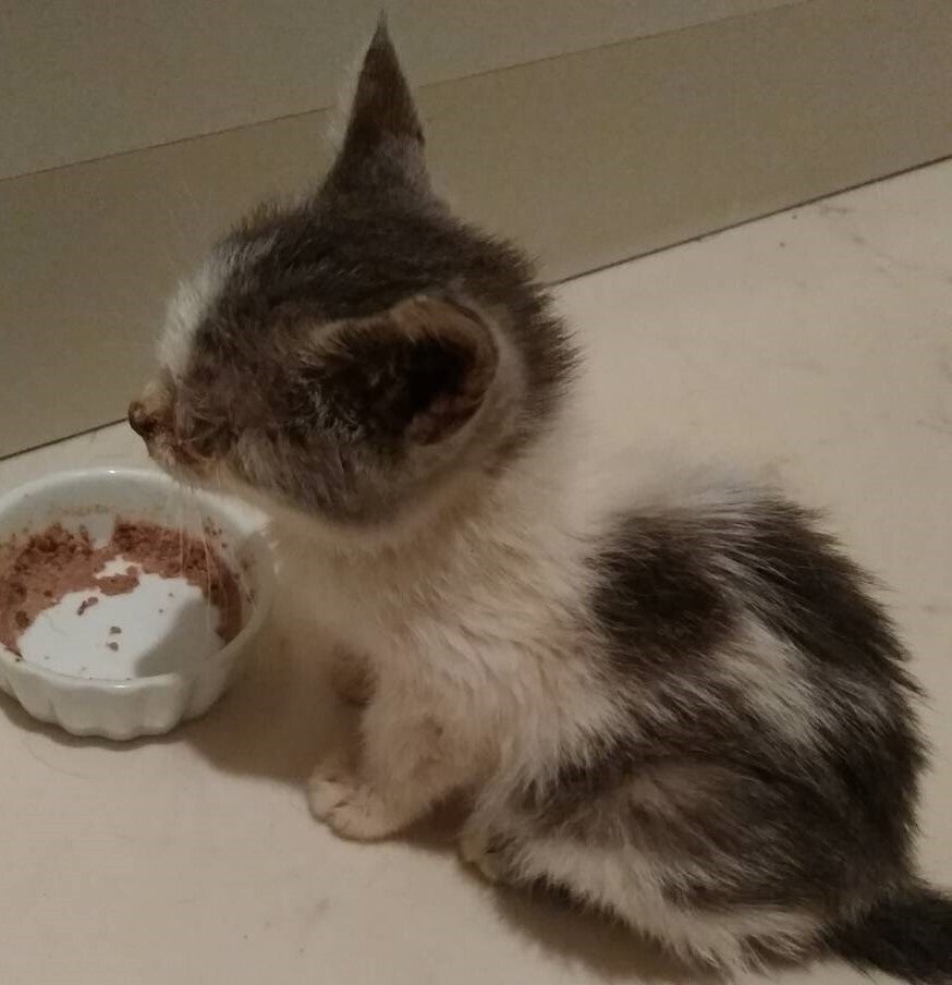 瀕死といえるほどの重症だった猫たちも、動物病院の手厚い治療と看護によって元気を取り戻し、やがて自力でキャットフードを食べることができるようになります。