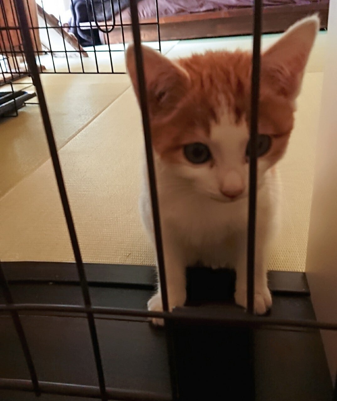 「にゃーご」は、生後約4か月の子猫です。大量のノミにより生きているのが不思議と言われる程の貧血状態、また餓死寸前でフラフラになり車通りの多い道路に出てきて突然倒れたところをたまたま通りかかり保護しました。そのまま病院に連れていき約2週間の入院を経て現在我が家で療養中です。
