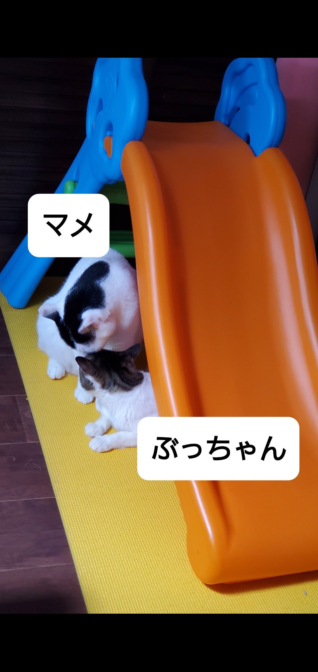 エイズ白血病検査も陰性だったぶっちゃん。今後は自由に家中を徘徊できるよう、お部屋のドアを解放することにしました。そして数日経ったある日、ぶっちゃんは今まで居た1階のお部屋を後にし、2階のお部屋に自らお引っ越ししていきました。『あ、もう僕今日からここにするんで』と、言わんばかりに。その去り際の背中は、いつもより ひと回りもふた回りも大きく見えたものでした(?)そして、先日は飼い猫のマメと仲良くしているかと思えばそのうち喧嘩に発展です。母ちゃん現れ、『ごらぁ~やめなさーーい!!』平和な毎日です・・・本日また喧嘩をおっぱじめようとした2匹。いつものように母ちゃんが『ごぉ』のところでぶっちゃんが『ん?僕なぁーんもしてませんよ?』顔をして、振り上げた手を舐め始め、『いや、ママ様この手はね、今からお顔を綺麗綺麗しようと振り上げた手だよ?』と言わんばかりの素知らぬ顔で口笛を吹き、逆毛立てて唸って怒っていたマメは、直ぐに私のもとに飛んでやって来て、「何もしてないってばぁ~♡」とばかりに足元スリスリして誤魔化していました( ºωº ;)大変恐縮なのですが、目標達成のためプロジェクトのシェア等、皆様のご協力を頂けましたら大変幸いに存じます。恐れ入りますがこちらのリンクをシェアいただければと思います。https://camp-fire.jp/projects/view/310578宜しくお願い申し上げますm(_ _)m