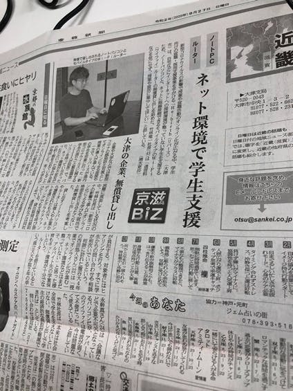 本日(2020年9月27日)産経新聞さんの滋賀版に本取り組みを掲載いただきました。誠にありがとうございます。