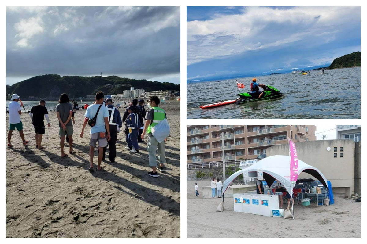 毎年、海水浴場開設期間中は、海の家営業者の皆様と協力することで海岸のパトロール・清掃を定期的に行い、幅広い年齢層の皆様に楽しんでいただける海づくりを目指し活動をしてきました。昨年の逗子海岸では40店舗以上の海の家が立ち並び、約33万人の来場者の皆様に来場いただき賑わいを見せていました。