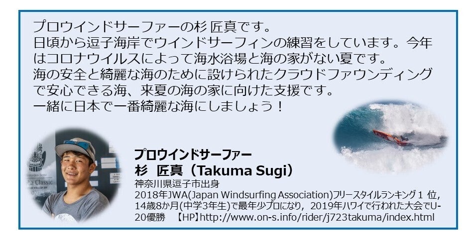 8月12日 応援者からの声【プロウインドサーファー杉匠真さん】