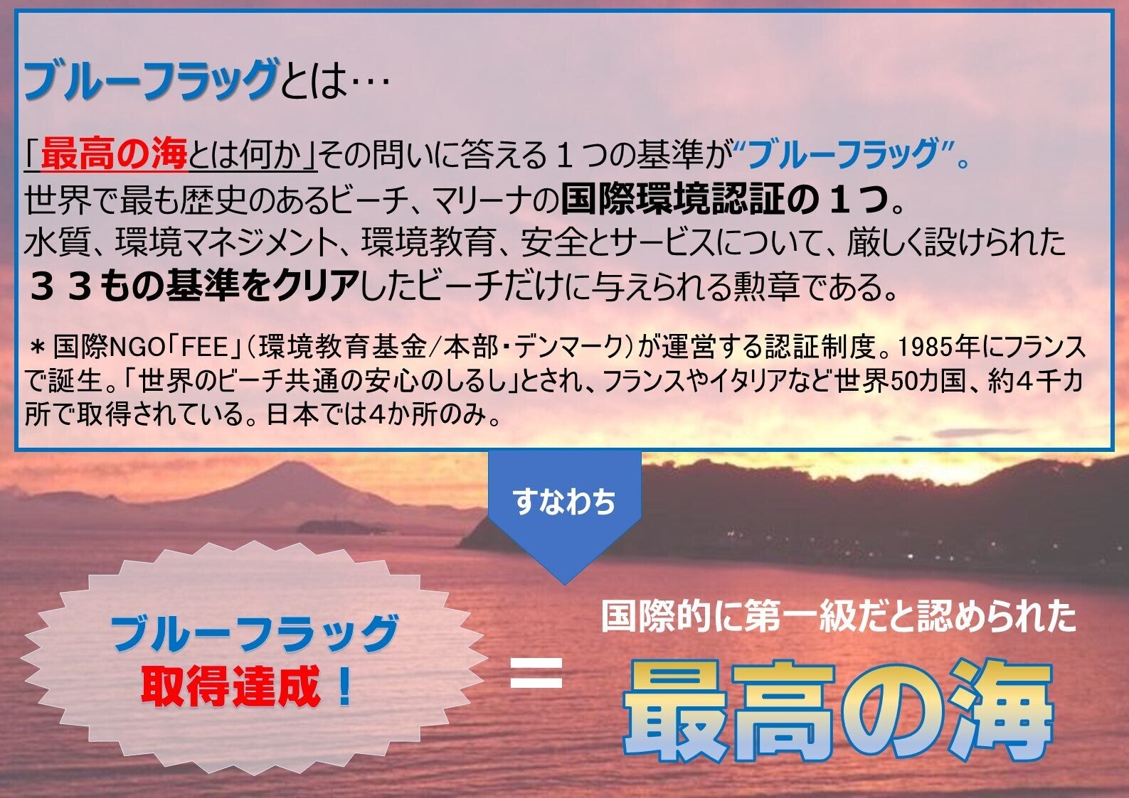 さらなる未来には”ブルーフラッグの取得”を目指し、世界から見てもきれいな海岸をつくっていく活動へと繋がる第一歩にしたい、という思いを持っています。