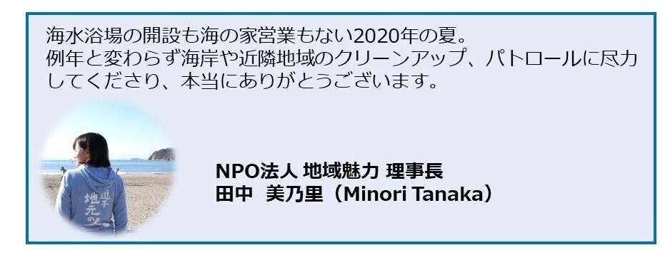 「海岸パトロール」「水難事故防止活動・人命救助」 「海岸及び近隣清掃」の運営費、そして「海の家事業者への支援」の資金として活用させていただきます。