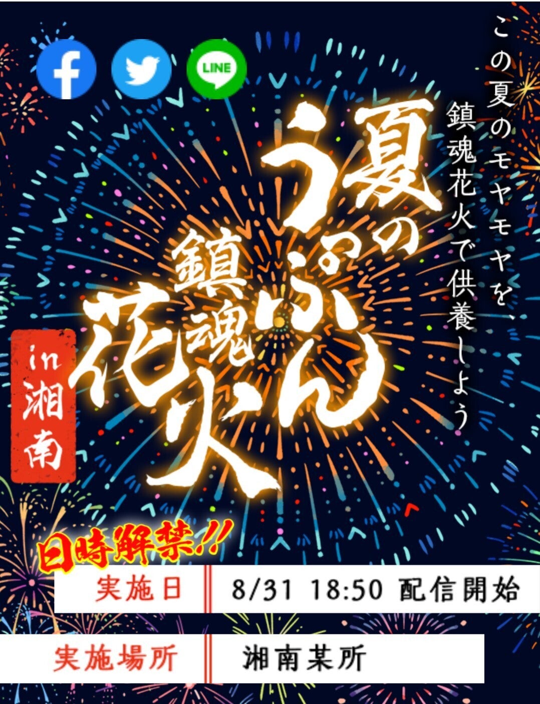 シークレット花火、お楽しみいただけましたか?!↓こちらからご覧いただけます。https://youtu.be/yKLDqLgsVNc実はこれ、「夏のうっぷん鎮魂花火 in 湘南」と題して、海の家を運営する由比ヶ浜茶亭組合・逗子海岸営業協同組合・江の島海水浴場協同組合による「オンライン花火実行委員会」がお届けしました。葉山森戸海水浴場協同組合においては絶大なご協力大変ありがとうございました!新型コロナウイルス対策のため現場で奮闘してくださっている医療従事者の皆さまに心からの敬意を表するとともに、この夏湘南の海を安心で安全な場所とすることにご協力をいただいた皆さまへの感謝、湘南エリア全ての市民、事業者、関係者へ向けて「未来に向けて頑張ろう」「来年は楽しい夏を過ごそう」という思いを込めこの花火を打ち上げました。皆さまそれぞれ色々な思いがあると思いますが、今日のこの花火で笑顔になれたら幸いです(^^)#来夏へむけて