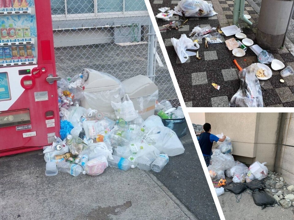 また、この日は町中の自動販売機横に大量のゴミが積まれていました。。。