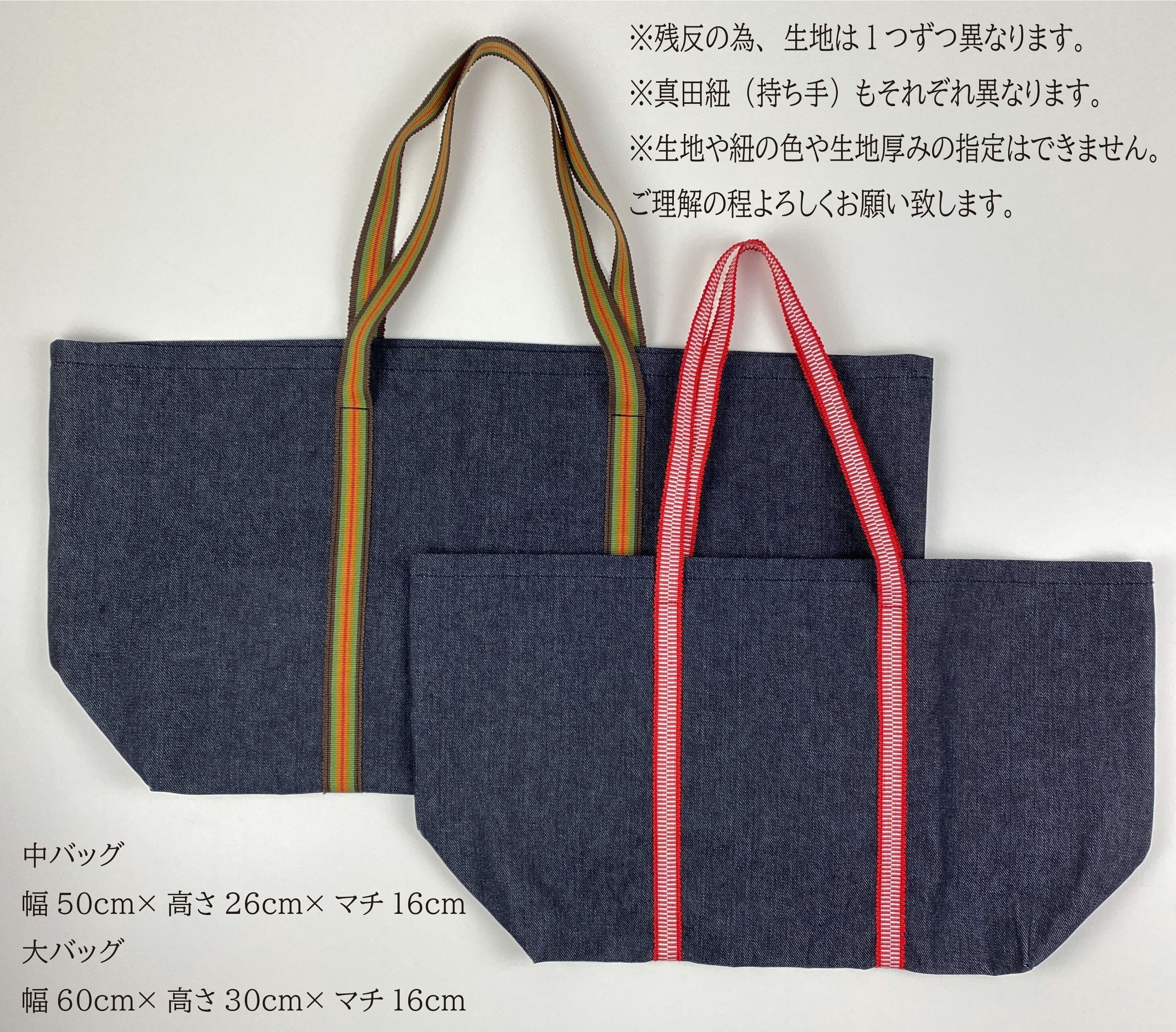 コロナ禍で縫製工場の受注が激減しております。残反デニムエコバッグをオーダーすることで