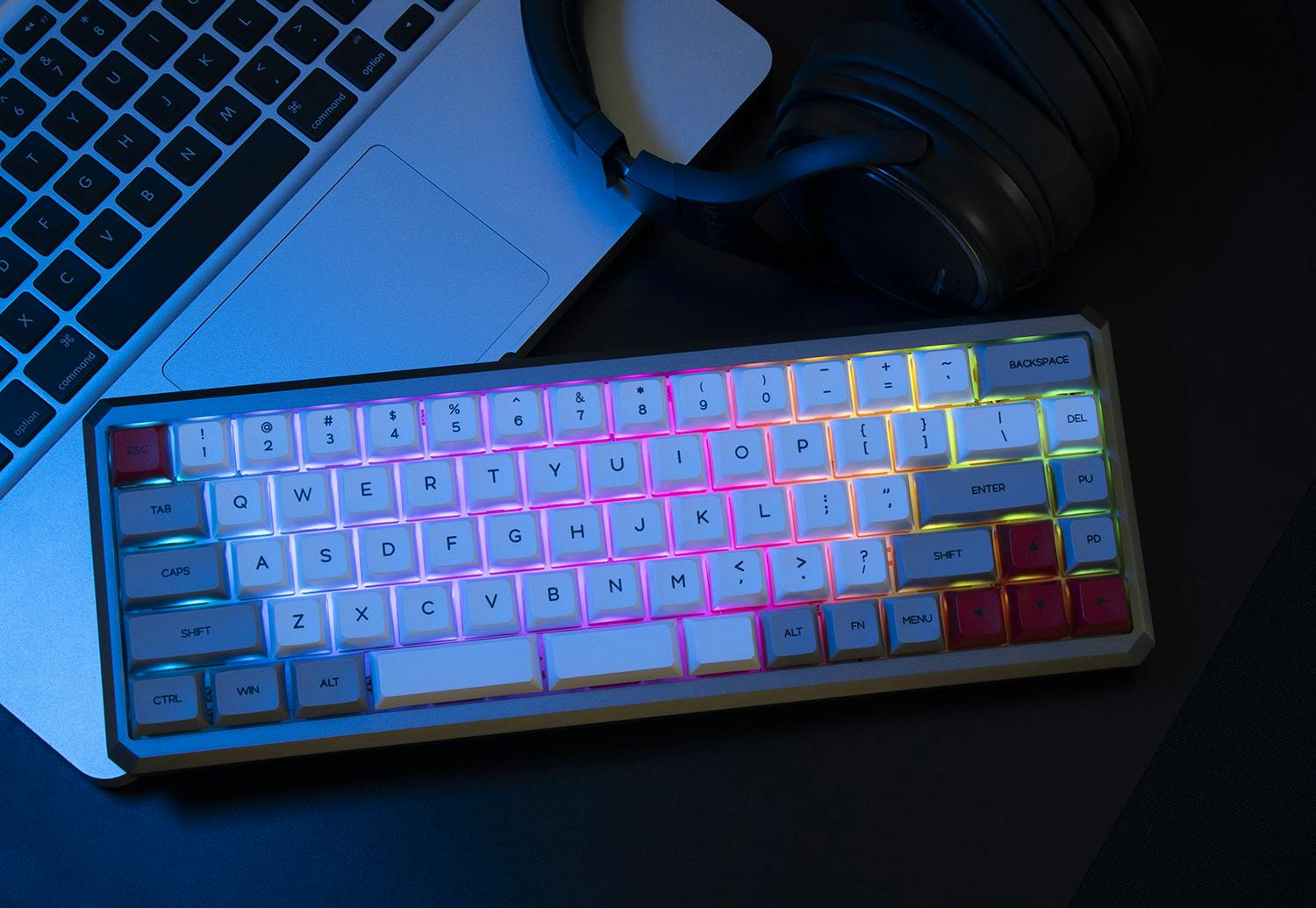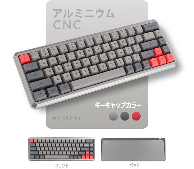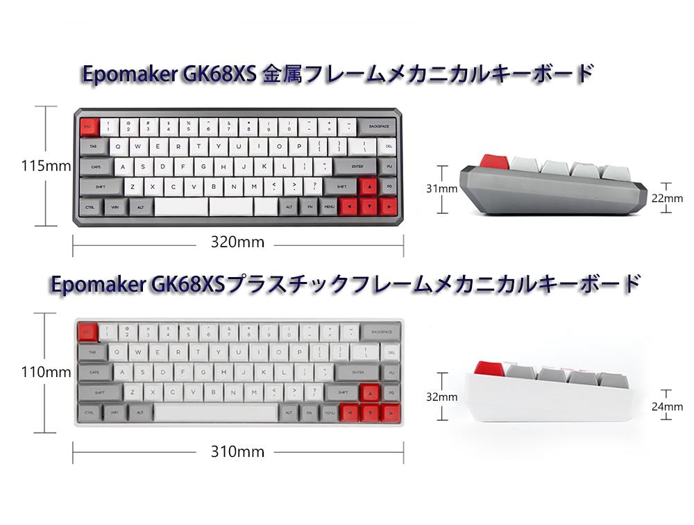 GK68XSは、あらゆる設定に対応するコンパクトなメカニカルキーボードとして設計されました。オプションにABSプラスチックバージョンとアルミニウムバージョンをご用意。ABSプラスチックは、価格が手頃でやや軽量でポータビリティに優れています。アルミニウムは耐久性に優れ、プラスチック製のボディでは再現できない独特の打伴感と音でメカニカルキーボード愛好家に愛されている素材です。