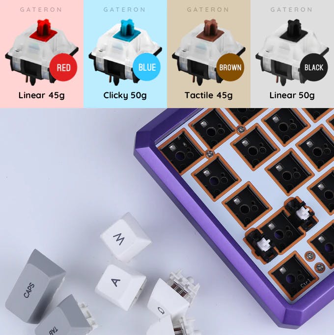 Gateronスイッチは、耐久性と独特の打伴感・音響特性で世界中で人気です。従来のGateronスイッチよりもはるかにスムーズな押し操作と、1億回のキーストロークというより長い寿命を持つGateronオプティカルスイッチを用意しました。