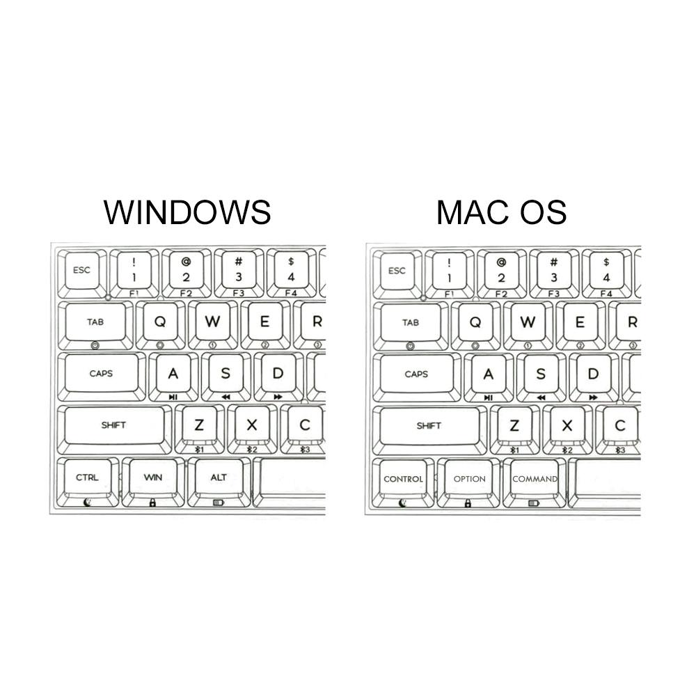 GK68XS Mac/iOS, Windows, Android)すべてのオペレーティングシステム(OS)と完全に互換性があり、スイッチを押すだけで簡単に異なるOSに対応させることができます。 GK68XSはMacレイアウトメディアキーを備えた数少ないメカニカルキーボードの1つです。GK68XSキーボードには、MacおよびWindows用の3つのキーキャップが付属しています。各オペレーティングシステムのすべてのバージョンと互換性があります。