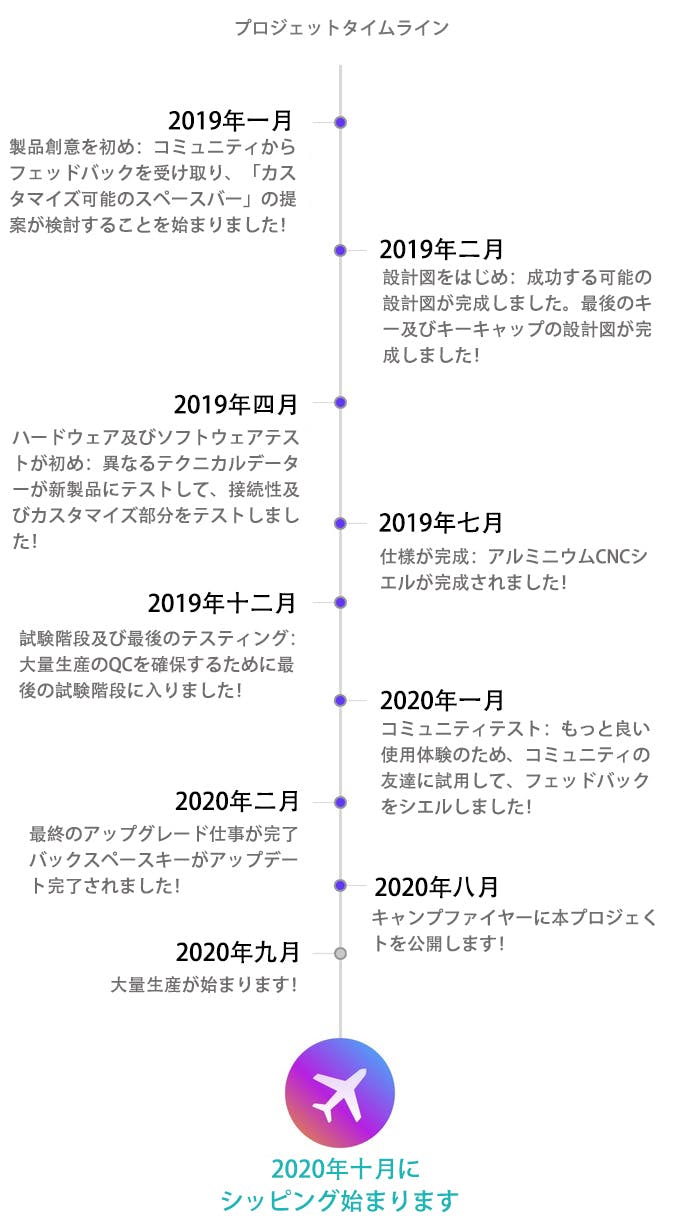 当社の製品はすでにテスト生産を終えており、間もなく大量生産を開始します。私たちと一緒にこのメカニカルキーボードを体験しましょう!私たちはこれまでに多くのキーボードを提供してきました。今回のGK68XSメカニカルキーボードも予定通りに配送できるように最善を尽くします。私たちは、GK68XSメカニカルキーボードを9月から順次出荷します。しかしながら、COVID-19のせいで、通常の発送(主に郵便局での発送)が現在適切かわかりません。私たちは信頼できる配送方法を現在模索しています。私たちはGK68XSメカニカルキーボードを多くの皆様にお使いいただくことを楽しみにしています。