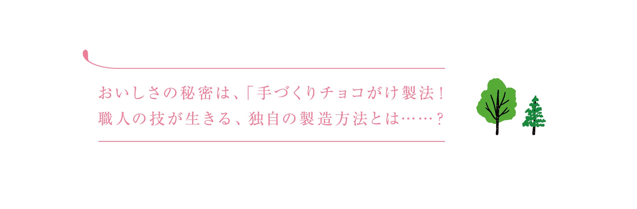 他にはないおいしさを実現するために、職人による「手づくりチョコがけ製法が採用されています。