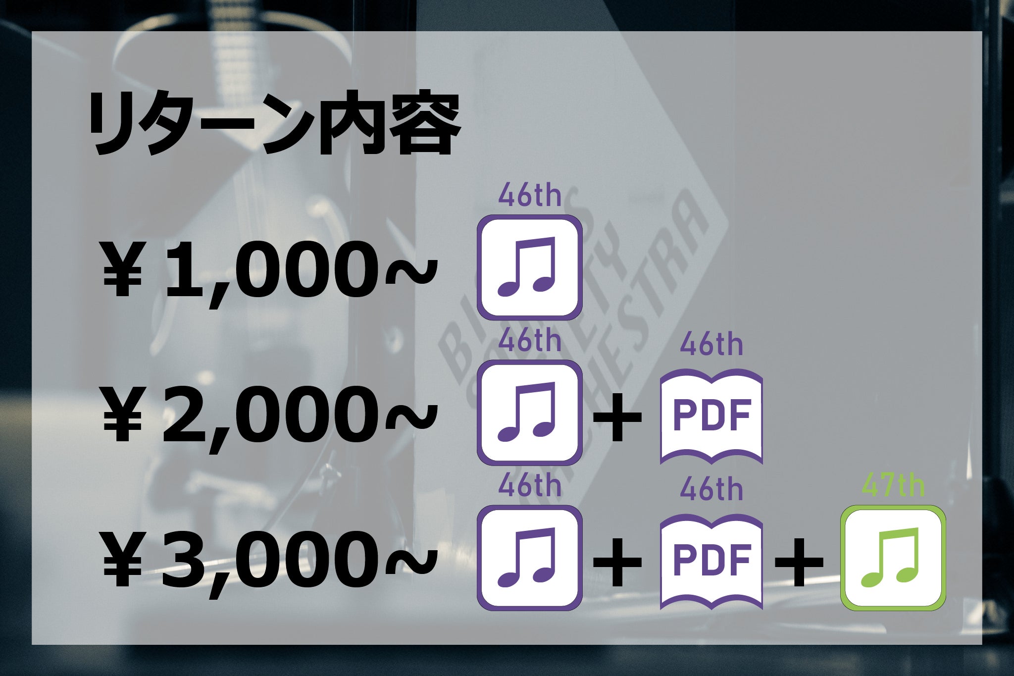 ご支援いただいた皆様には、リターンとして無観客開催となった第46回リサイタル音源及びパンフレットデータ・次回リサイタル音源(※)をご用意しております。