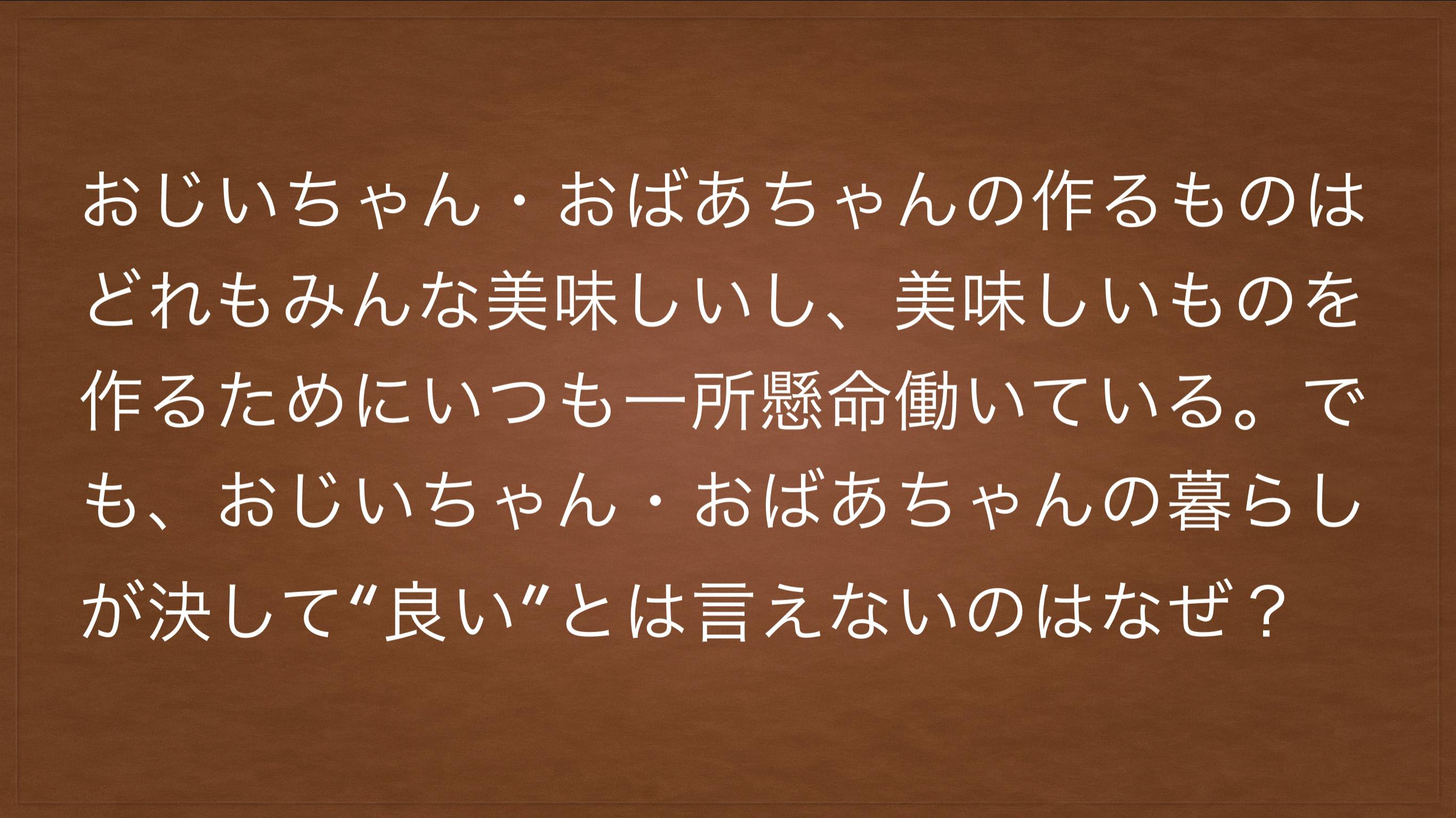 彼は、高校2年生の時、農家をしている自分の祖父母の生活を見て、