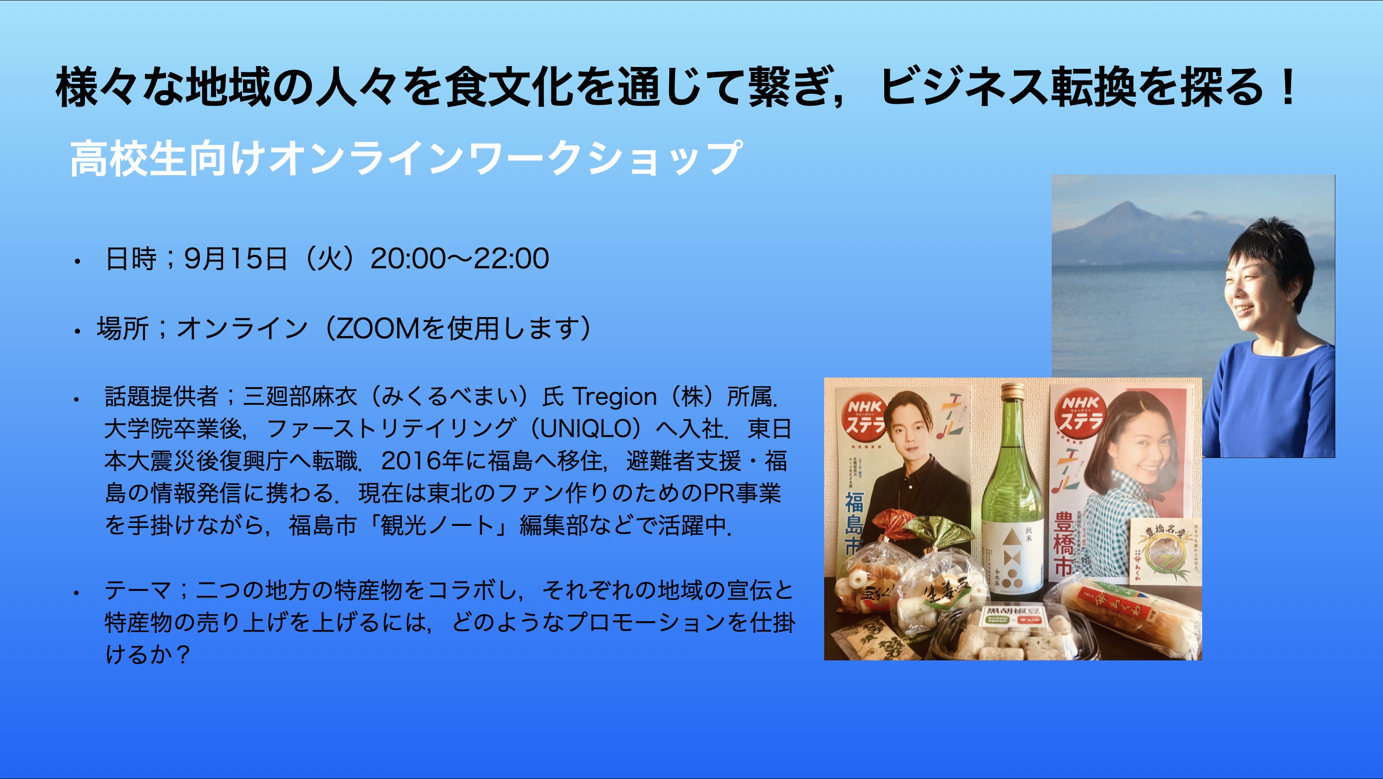昨日,高校生向けオンラインワークショップ「様々な地域の人々を食文化を通じて繋ぎ,ビジネス転換を探る!」を開催しました.