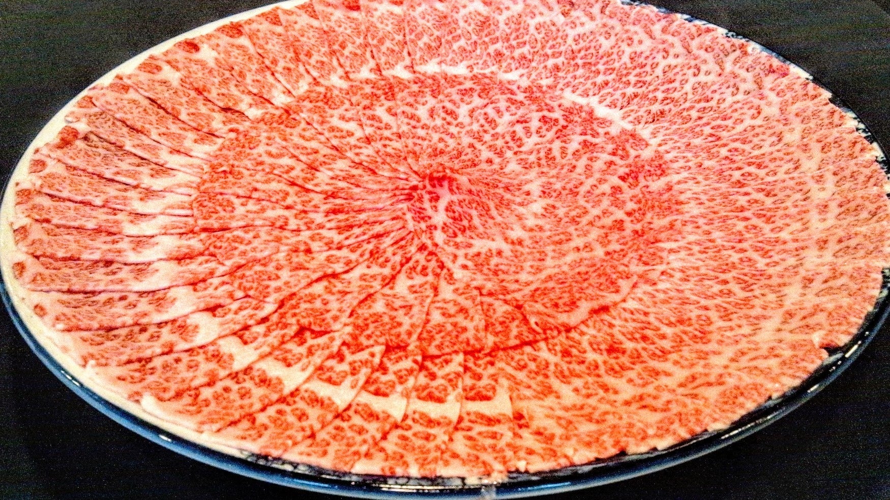一度で二度お楽しみいただくよう、赤身肉とロース肉の2種盛と、特選のロースのすき焼きを準備いたします。