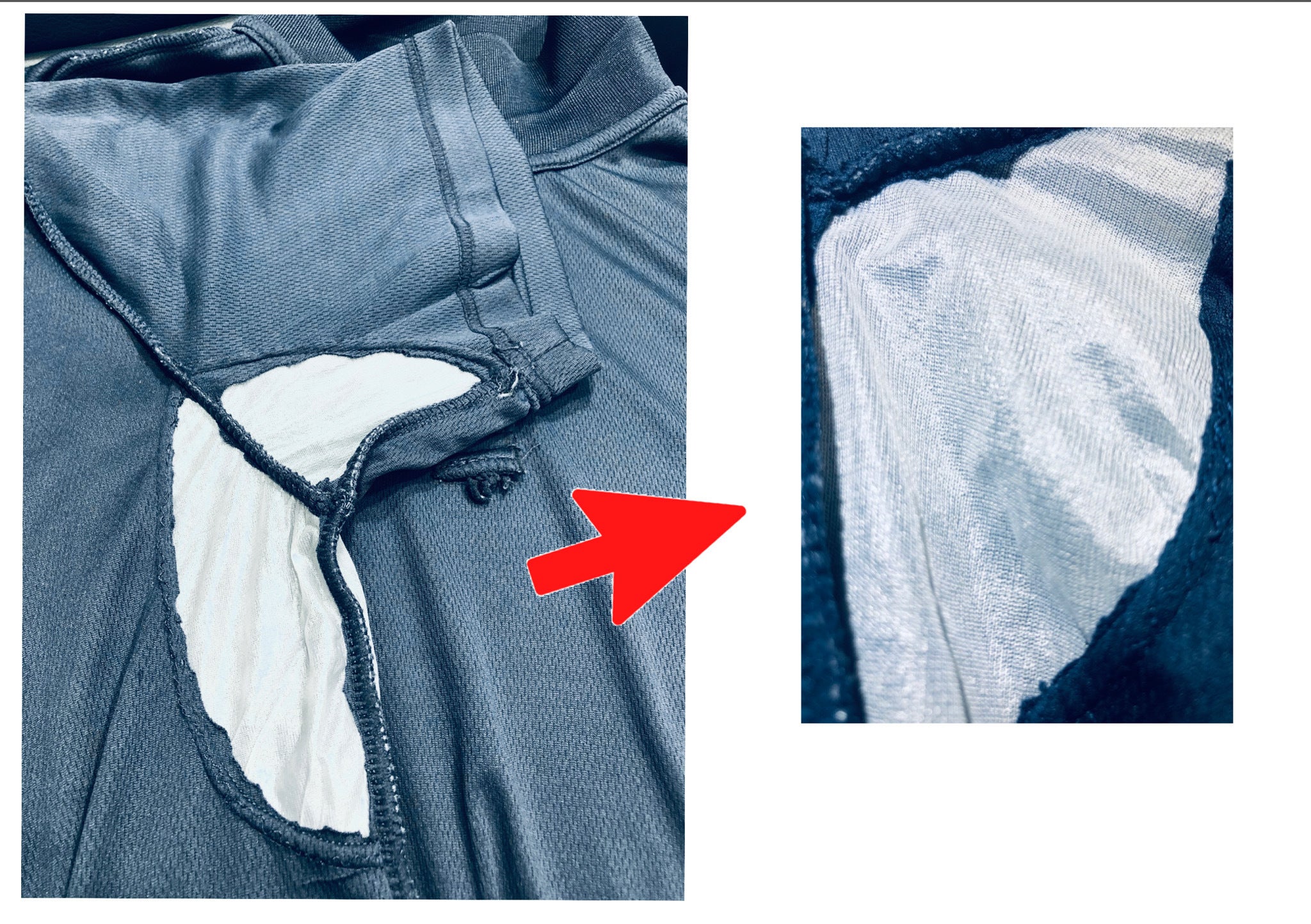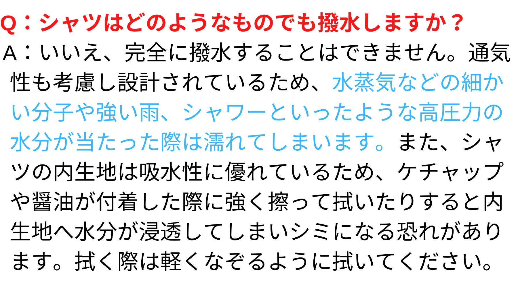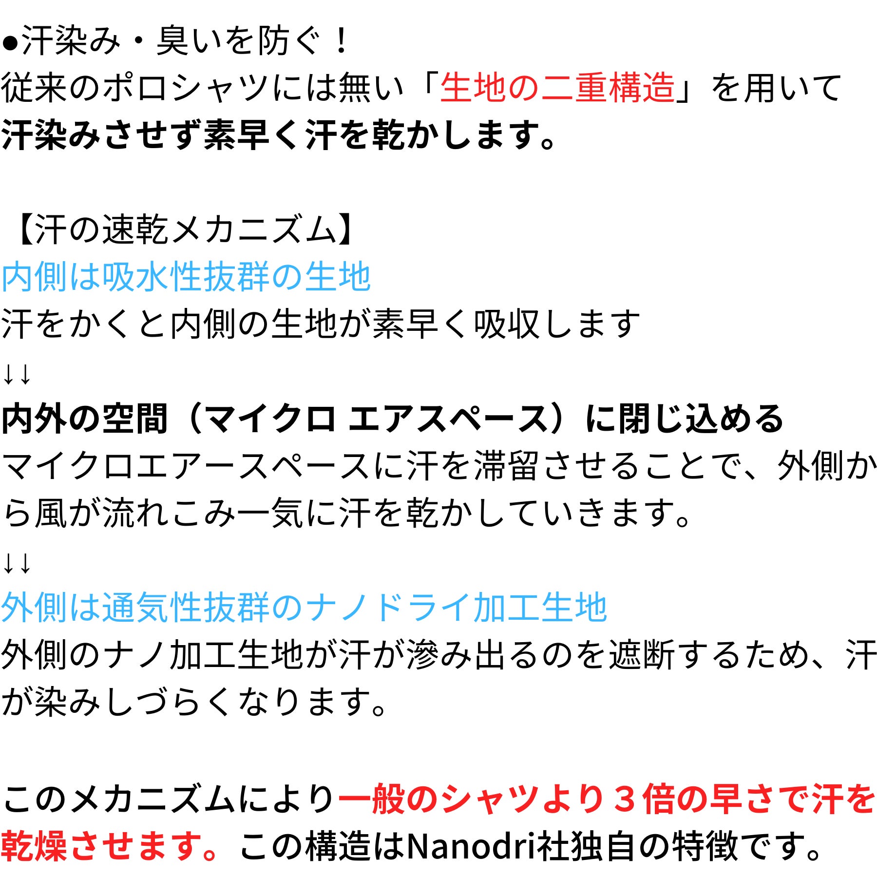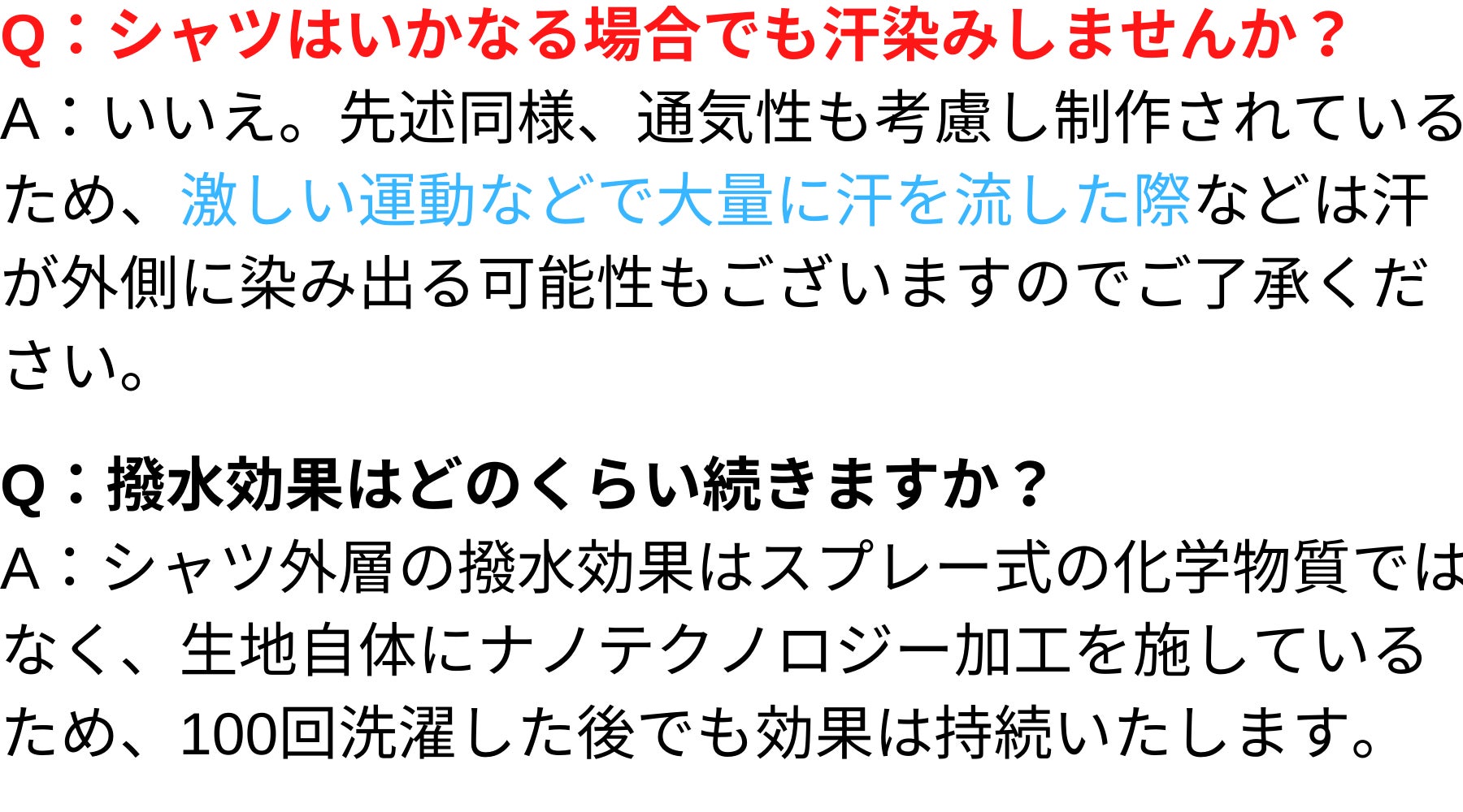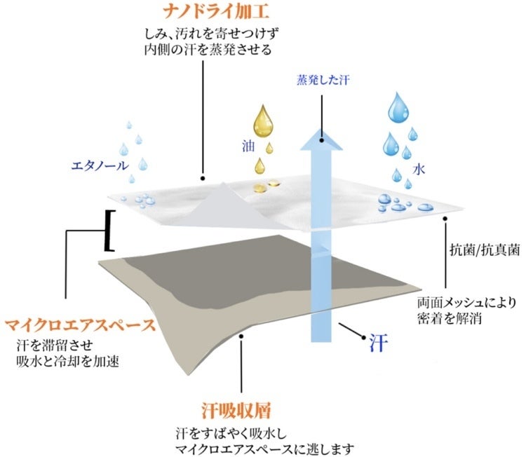 ②汗が表面に染み出ない