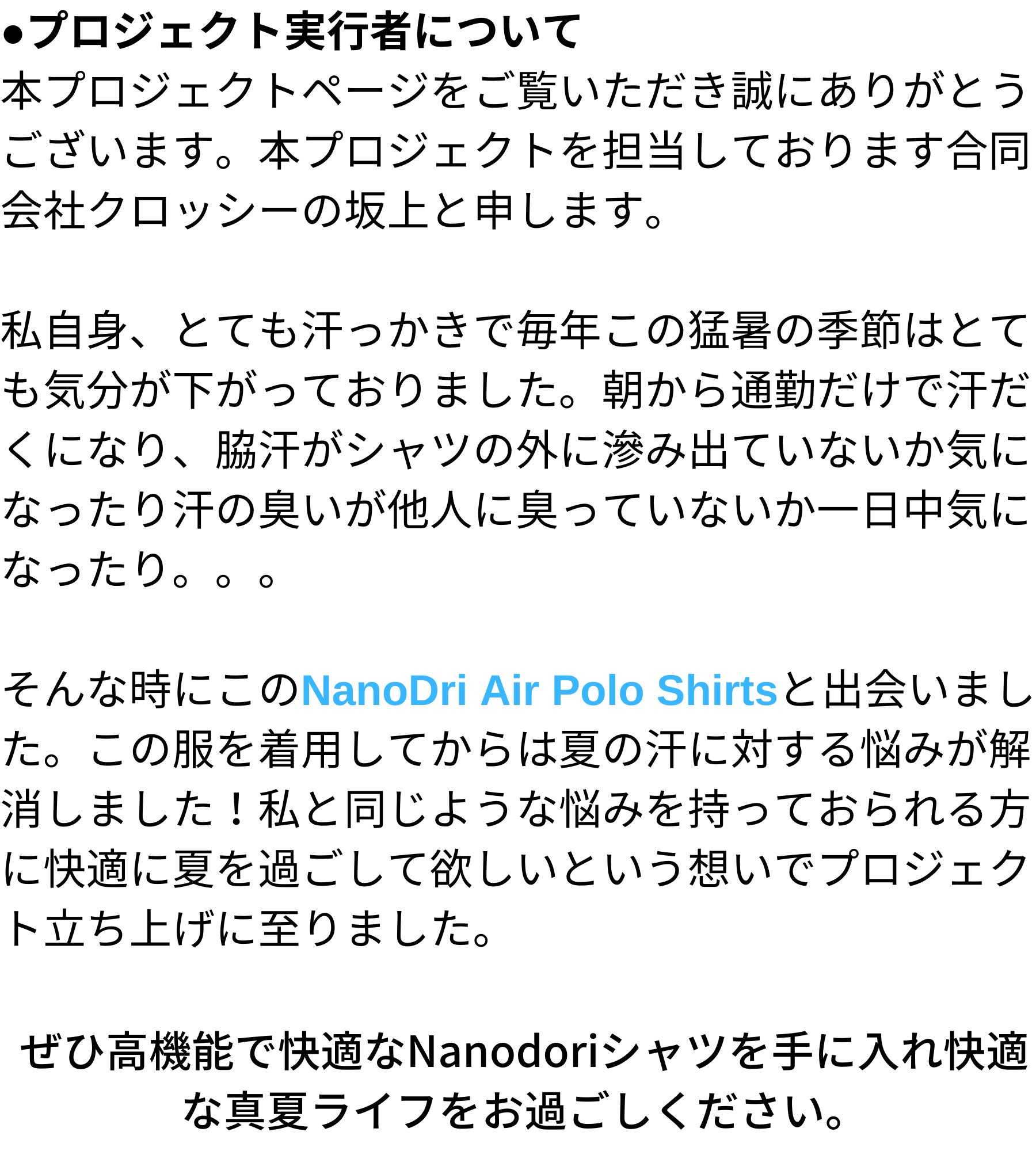 2020/09/14 18:08NanoDri 支援者の皆さまお世話になっております。NanoDri Air Polo プロジェクトチームの坂上です。もうすでに商品がご到着されているご支援様もいらっしゃるかと思いますが、9/13(日)に全ての発送が完了しましたので、当活動レポートにてご報告させて頂きます。佐川急便にて発送しておりますので、不在で受け取れなかった方は不在伝票のご確認よろしくお願い致します。【商品交換について】商品に万が一、破れやほつれ、その他不具合がございましたら9/30(水)までにご連絡頂きますようお願い致します。弊社にて商品の交換を致します。それ以降の交換につきましては誠に恐れ入りますが商品発注の都合上、承る事が出来かねます。この度は当プロジェクトをご支援頂き誠にありがとうございました。引き続き、弊社にてサポートさせて頂きますので今後ともよろしくお願い致します!!坂上 もっと見るプロジェクト終了のご報告と御礼・今後の発送予定について