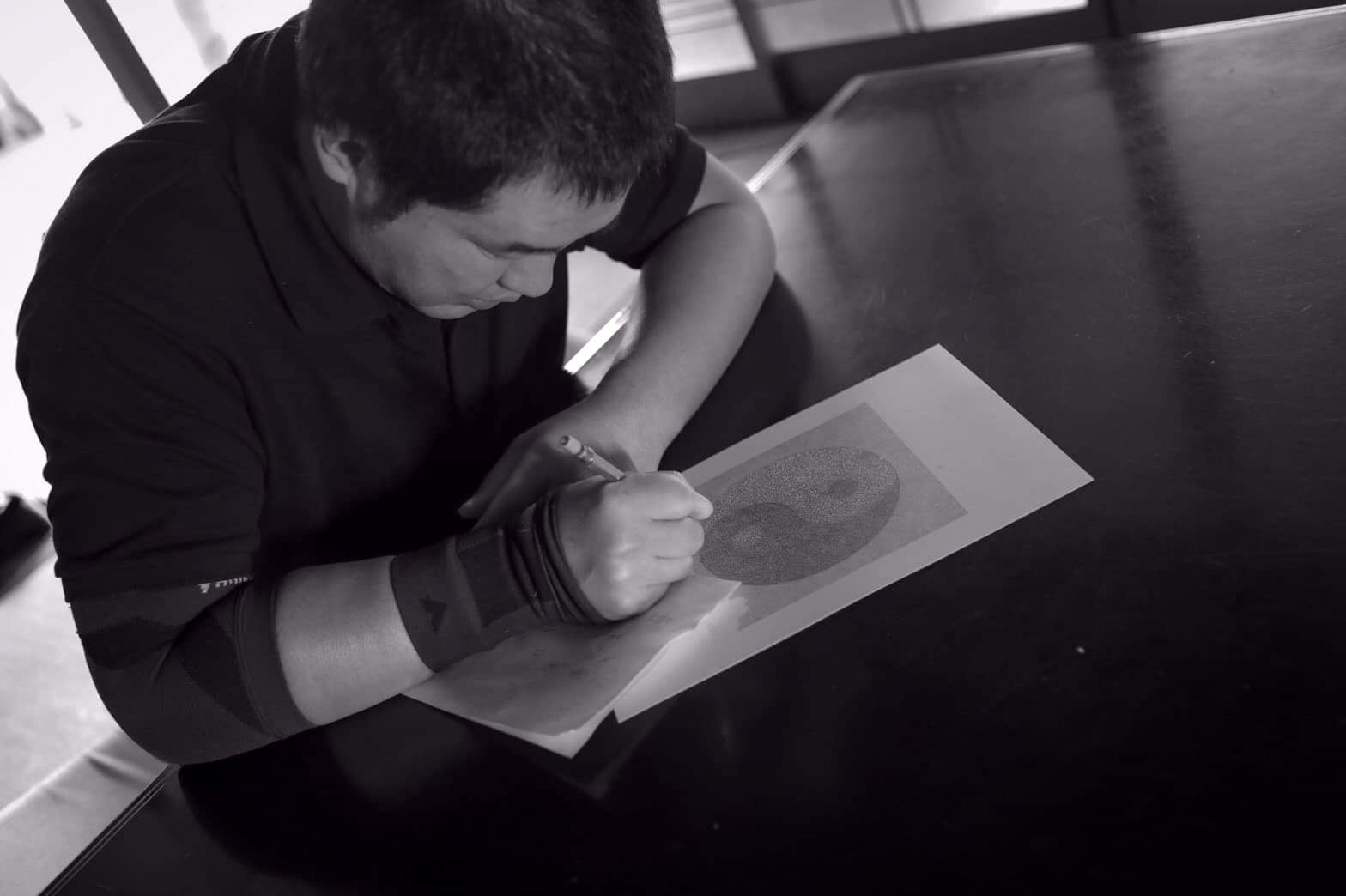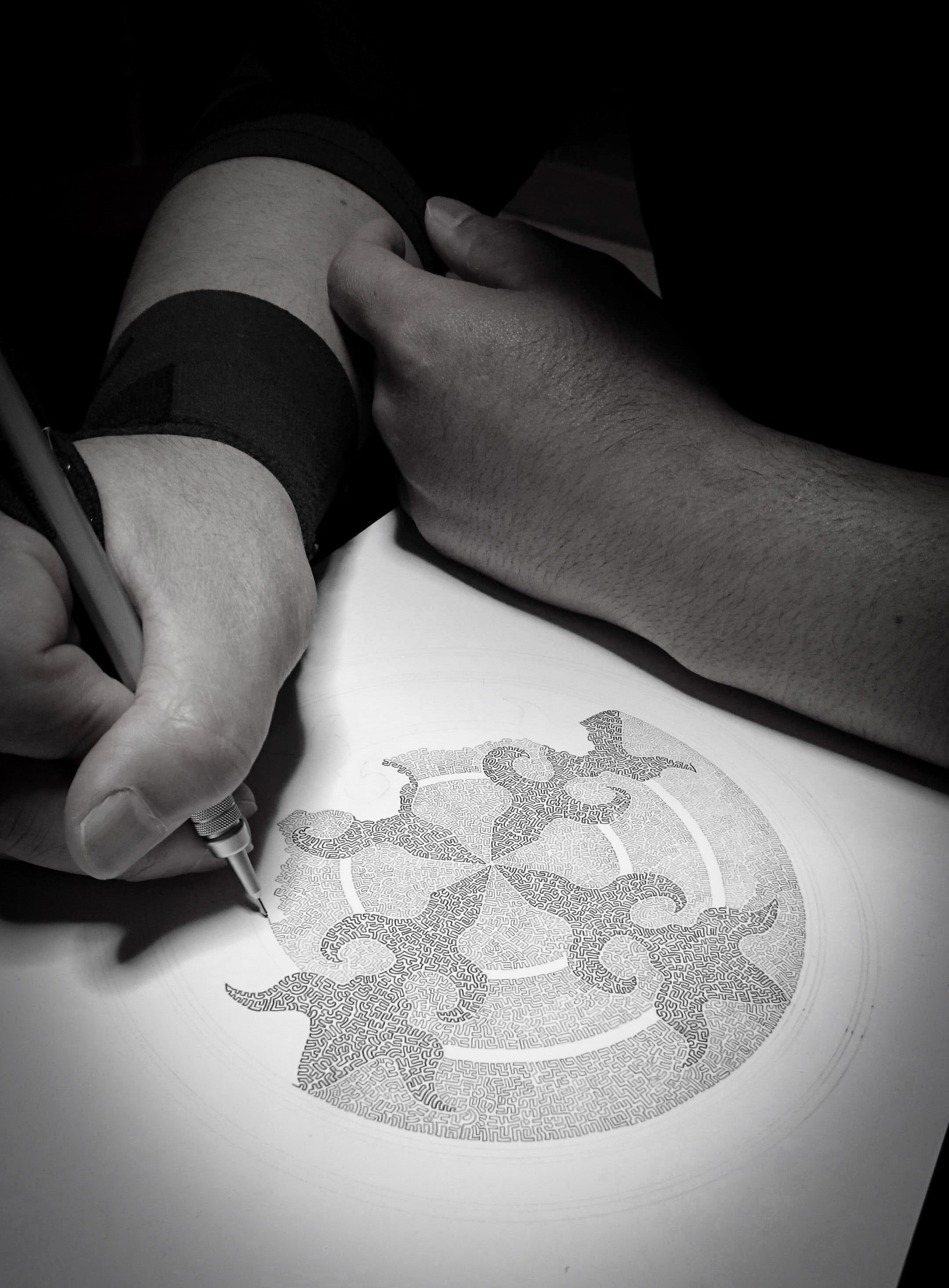 現在はシャープペンシルやカラーボールペンを使用して、始まりと終わりが一本の線でつながる【ONE LINE ART】を制作するONE LINE ARTISTとして活動中。