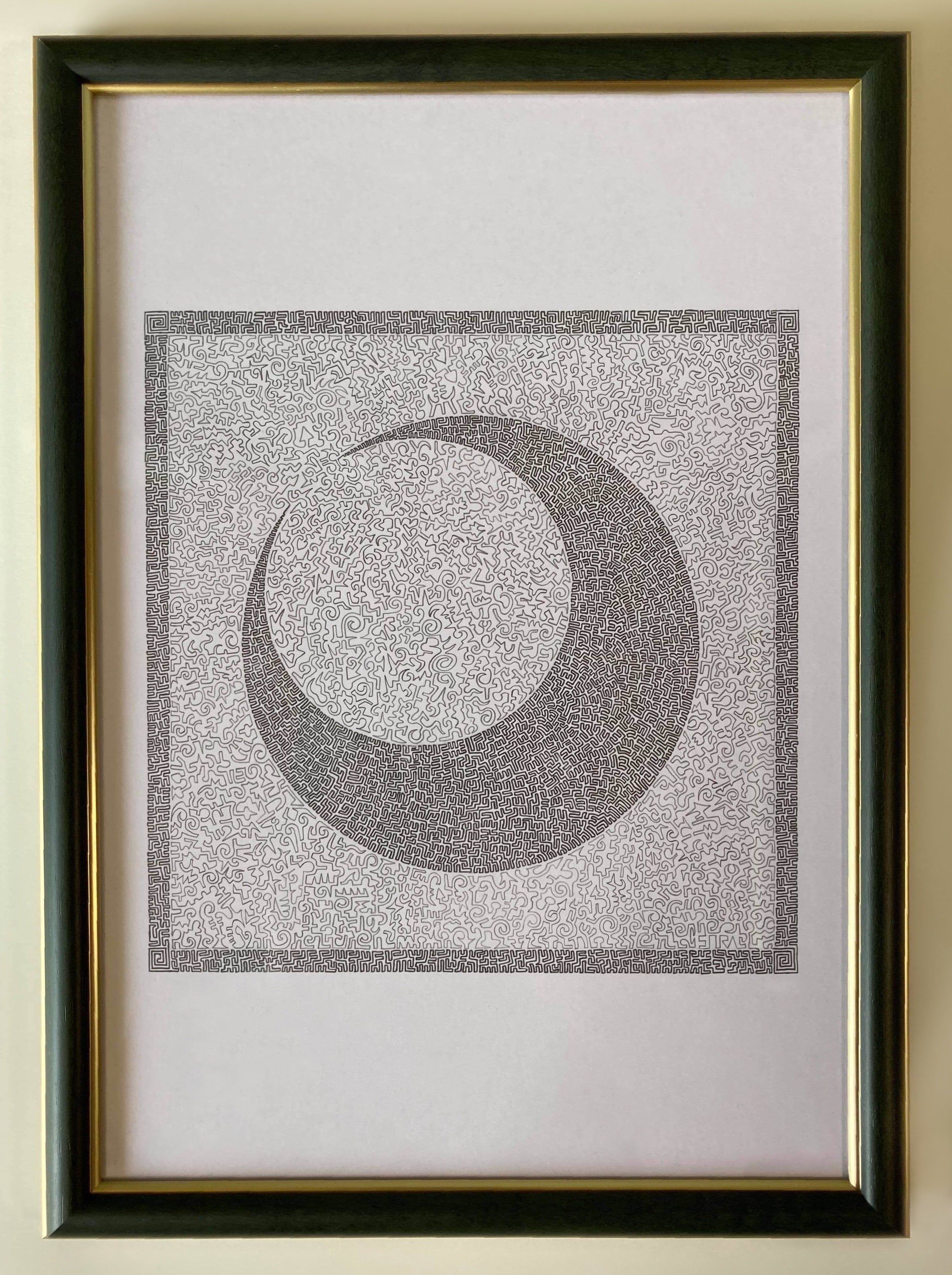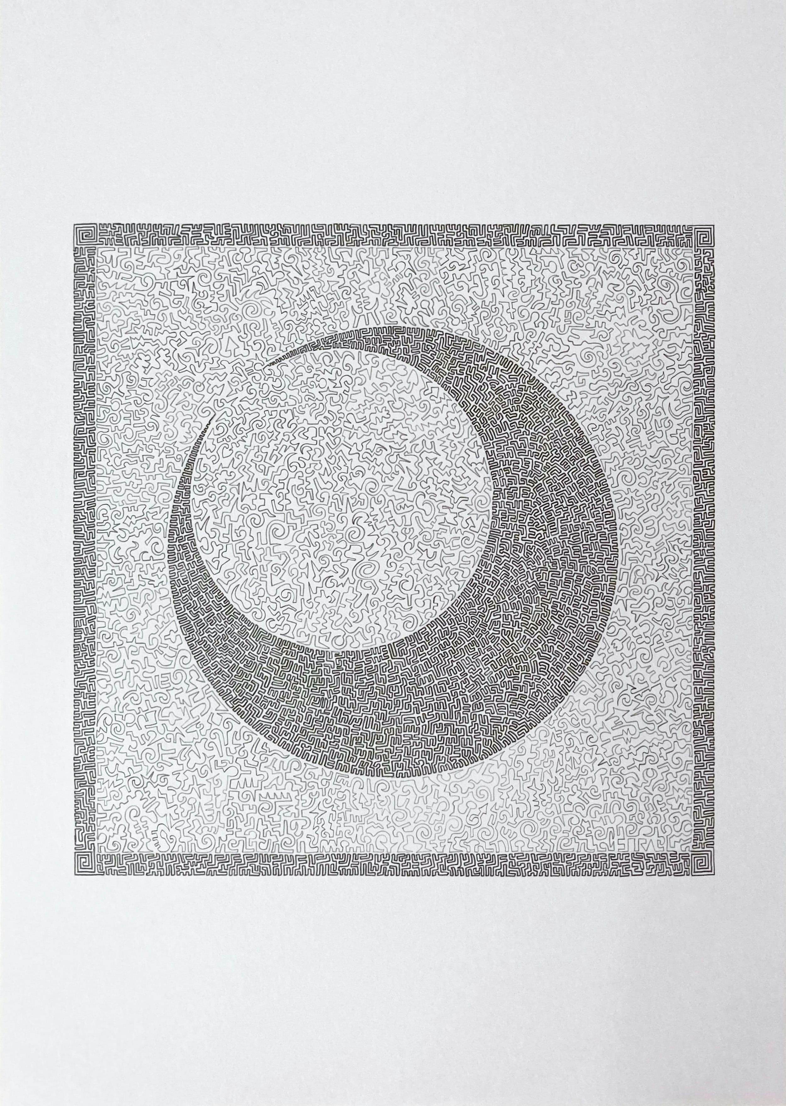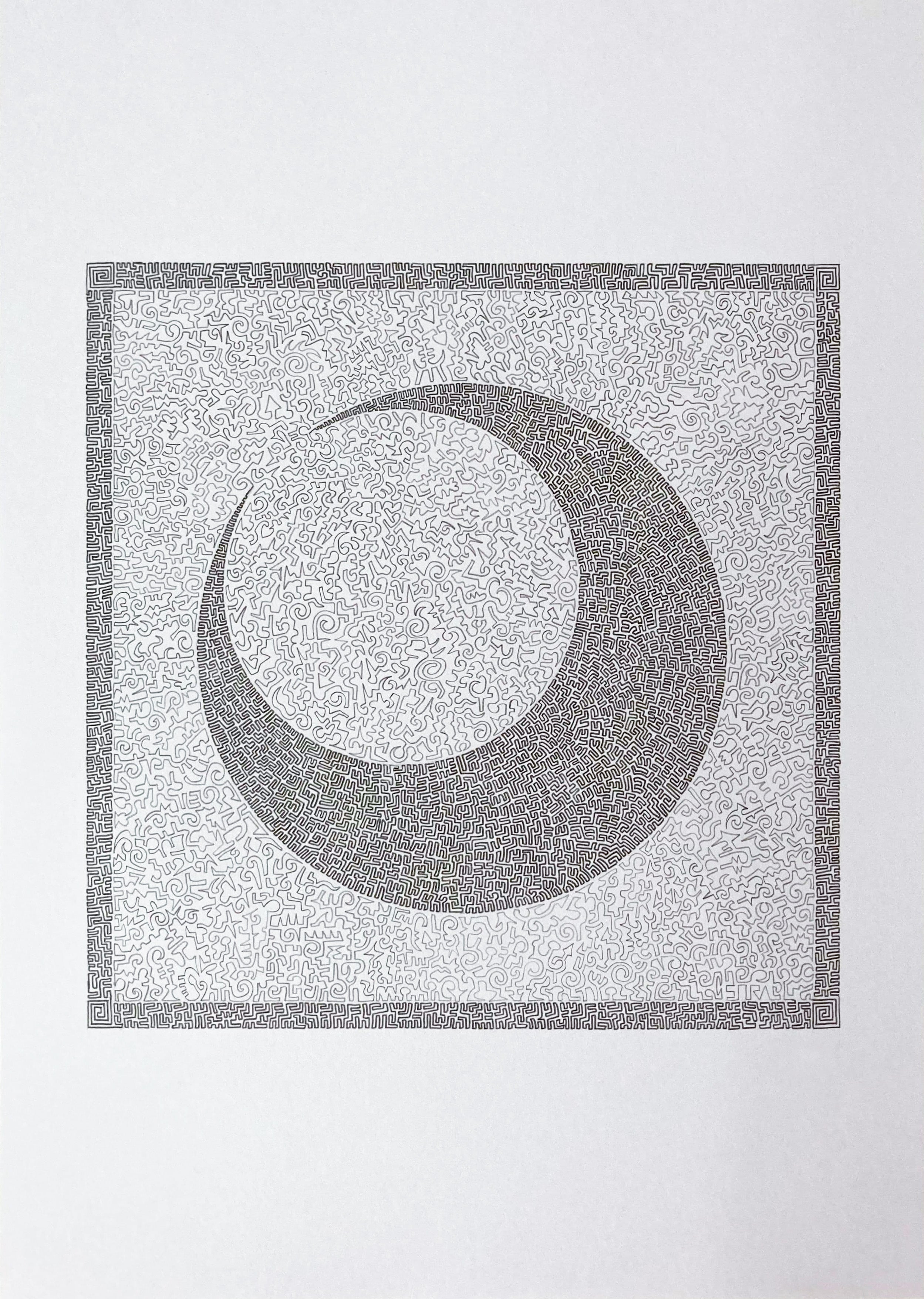 『この作品は0.3㎜のシャープペンシルを使用して、始まりと終わりの無い一本の線で描きました。
