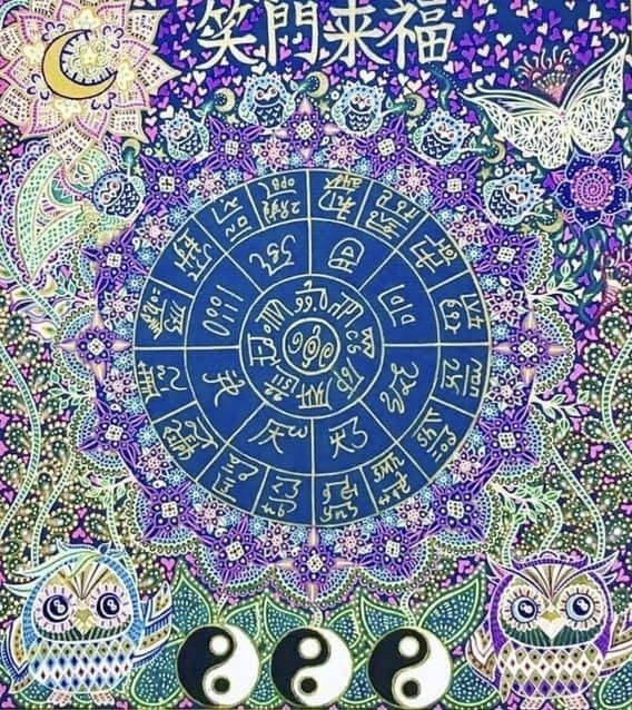 フクロウさんを載せた龍体文字の護符アート٩を描書いてみたいと思い描きました⭐︎⭐︎⭐︎