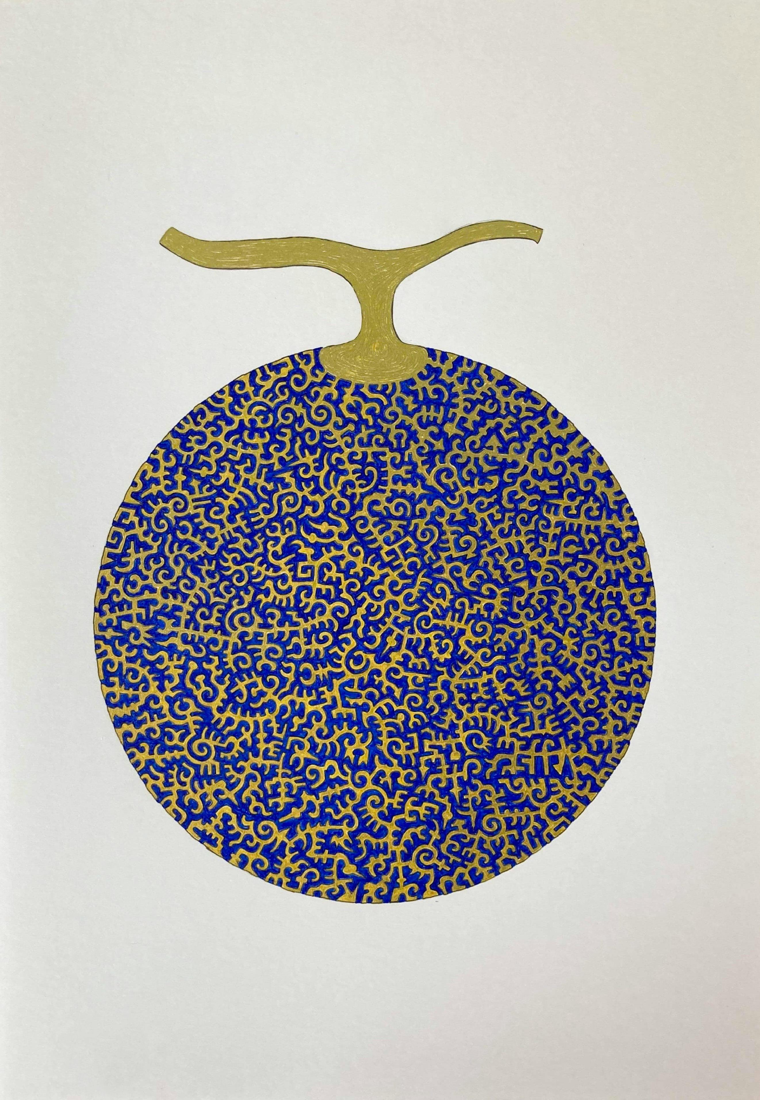 メロンの網目を意識して描きました。