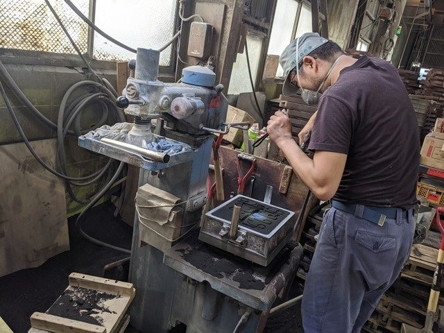 冷えた鋳物を砂型から取り出し、製品以外の余分な箇所を切断。仕上げていきます。